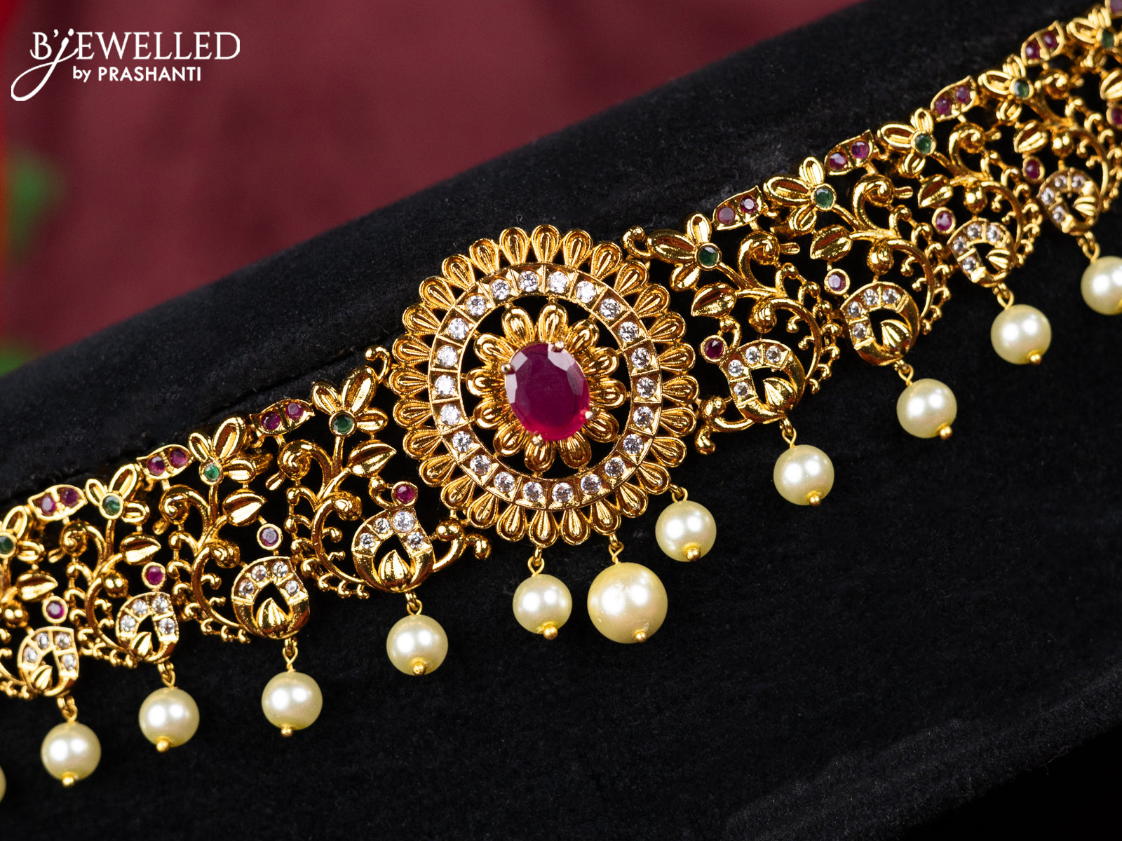 Antique hip belt floral design with kemp & cz stones and pearl hangings