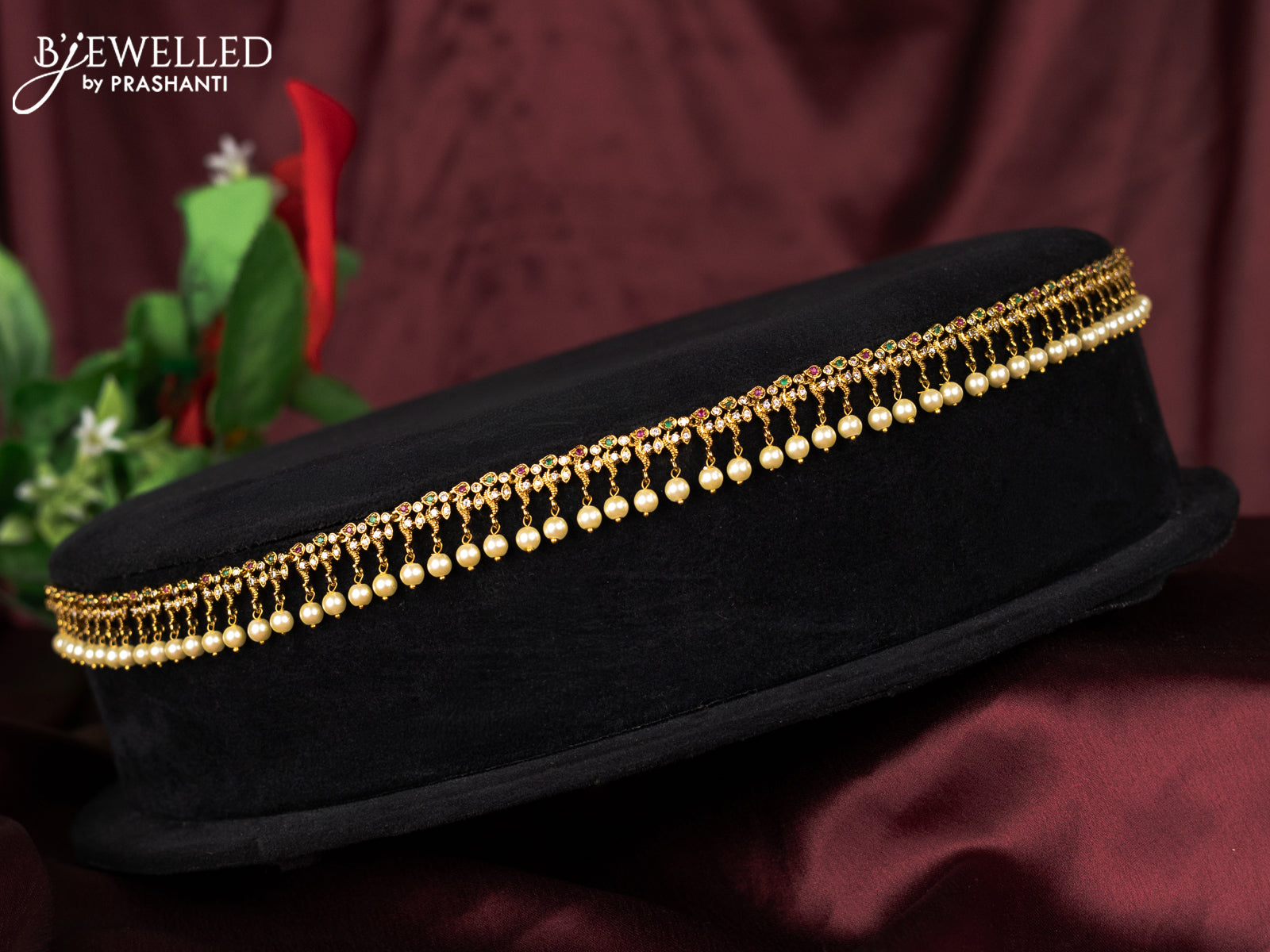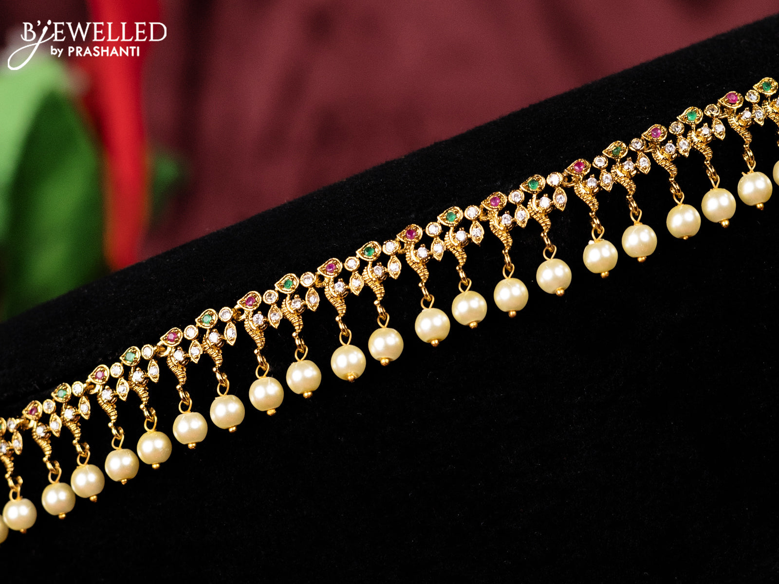 Antique hip chain with kemp & cz stones and pearl hangings