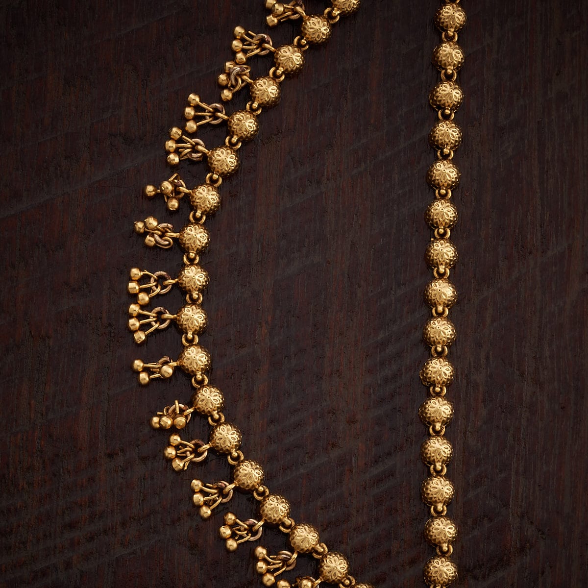 Elevate your traditional look with this pair of antique Matil this festive season. Its elegant design and impressive finishing will add an alluring charm to your Indian look and will make you stand out among the crowd. You can style it with both tied or loose hair. Its gold polishing will enhance your traditional look, complementing the all-ethnic vibes. Style up your attire with our antique matil this festive season.