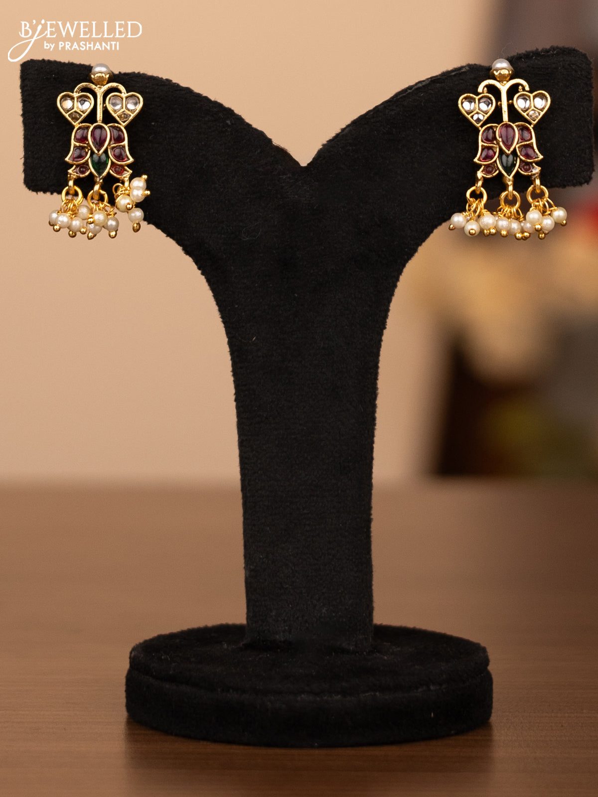 Antique necklace floral design with kemp & kundan stones and pearl hangings