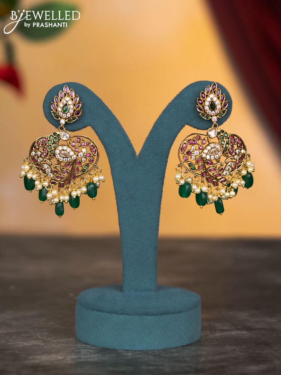 Antique necklace peacock design with kemp & cz stones and pearl & green beads hangings