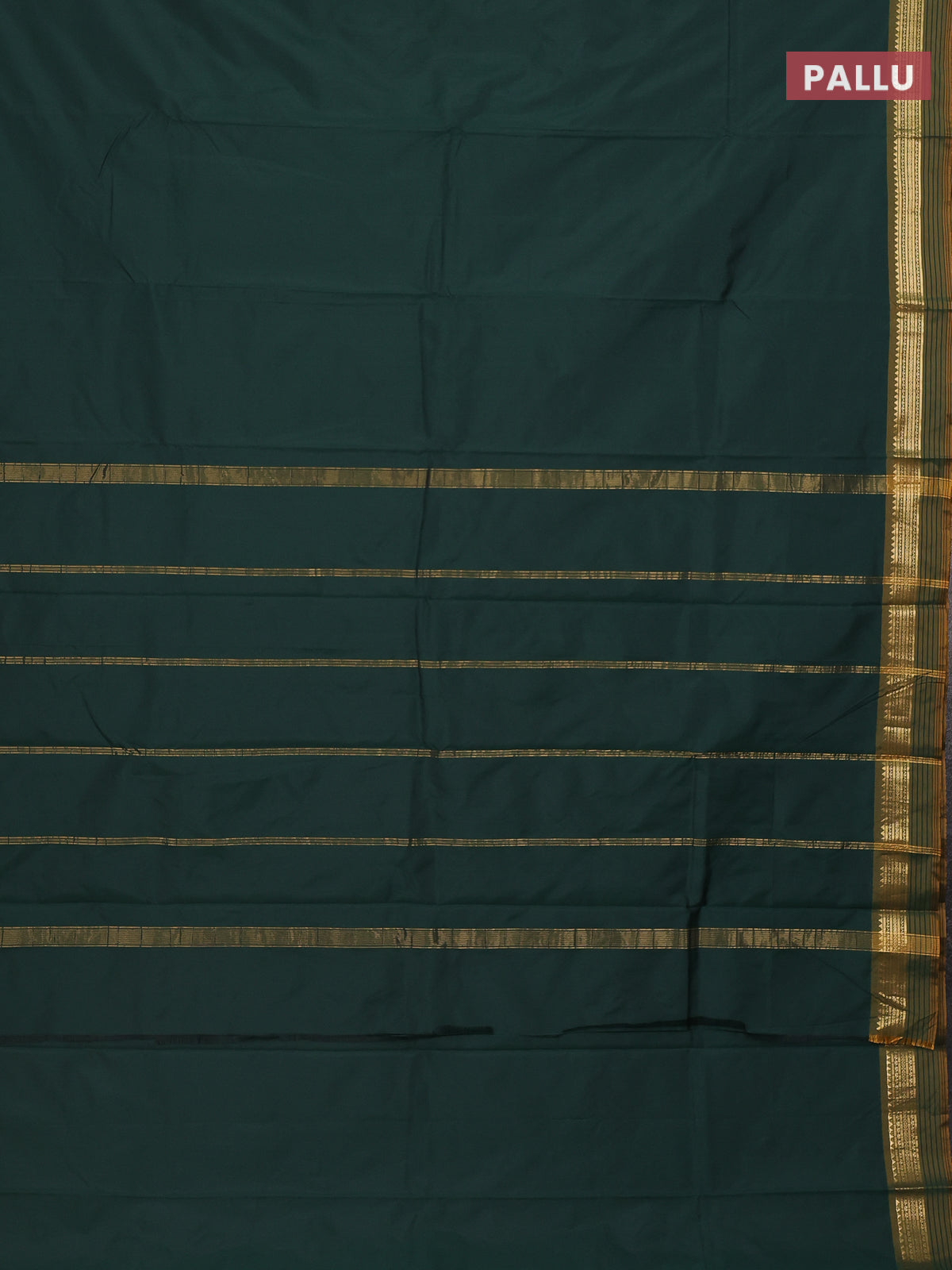 Arani semi silk saree bottle green and dark mustard with plain body and zari woven simple border