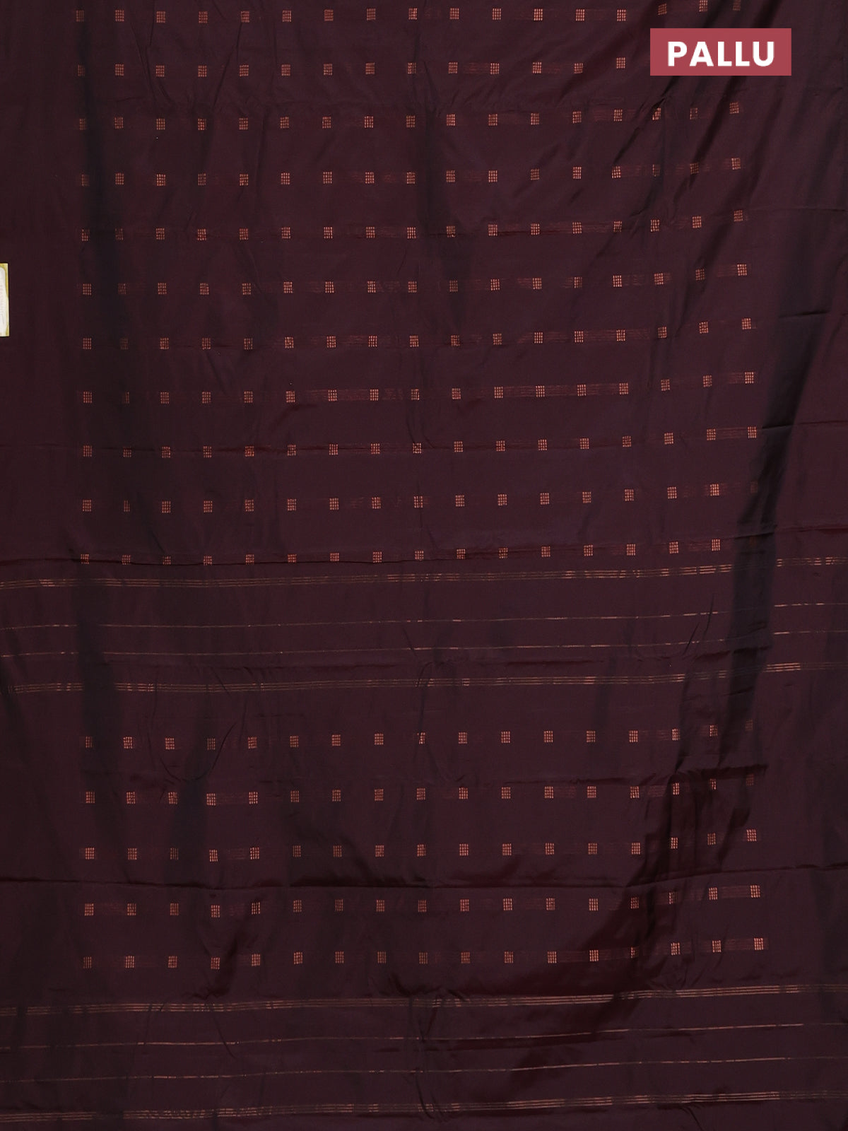 Arani semi silk saree deep maroon with copper zari woven buttas in borderless style
