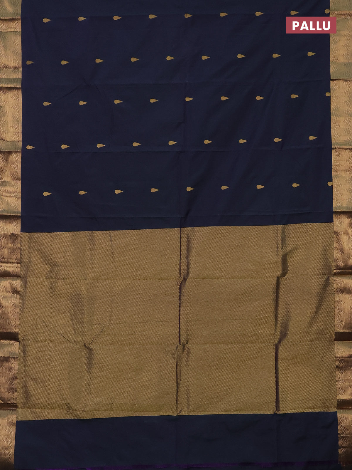 Arani semi silk saree dual shade of greenish violet with zari woven thilak buttas and zari woven border