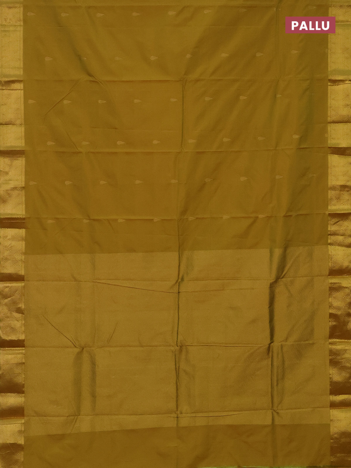 Arani semi silk saree dual shade of mustard yellow with zari woven thilak buttas and zari woven border