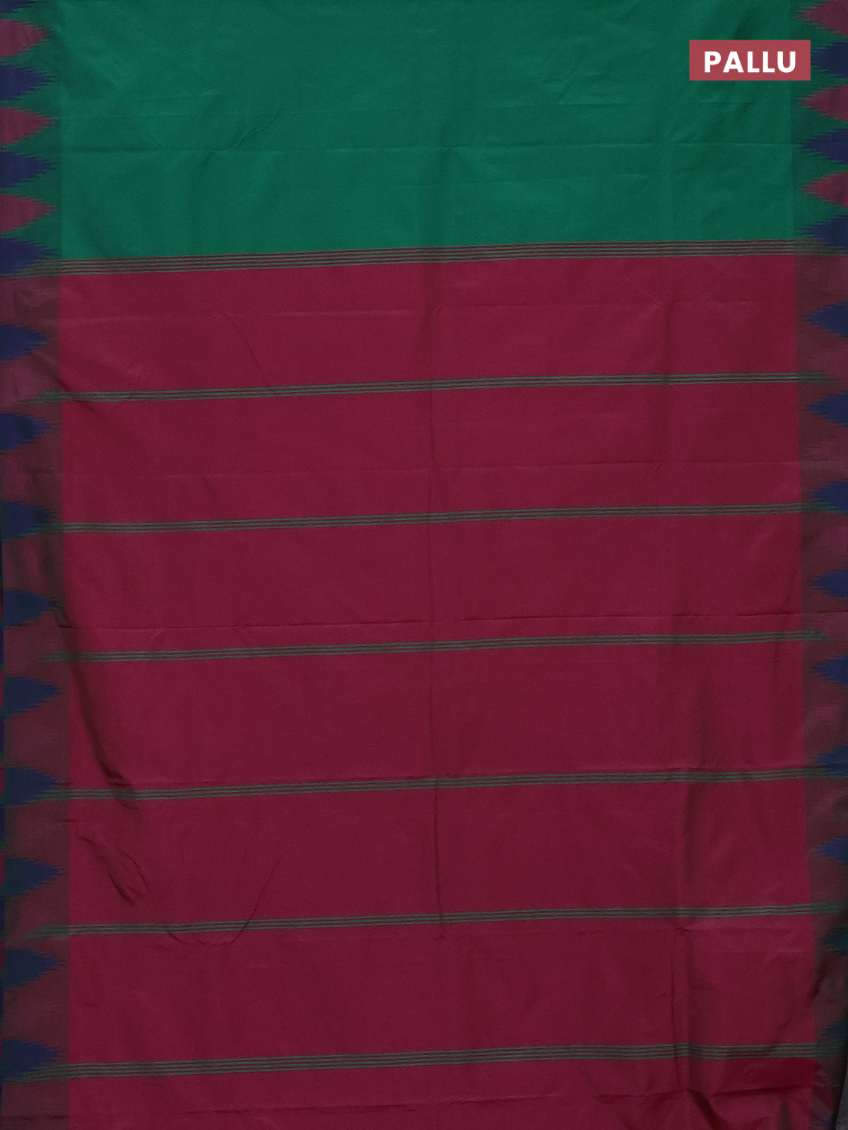 Arani semi silk saree green and blue with plain body and temple design border