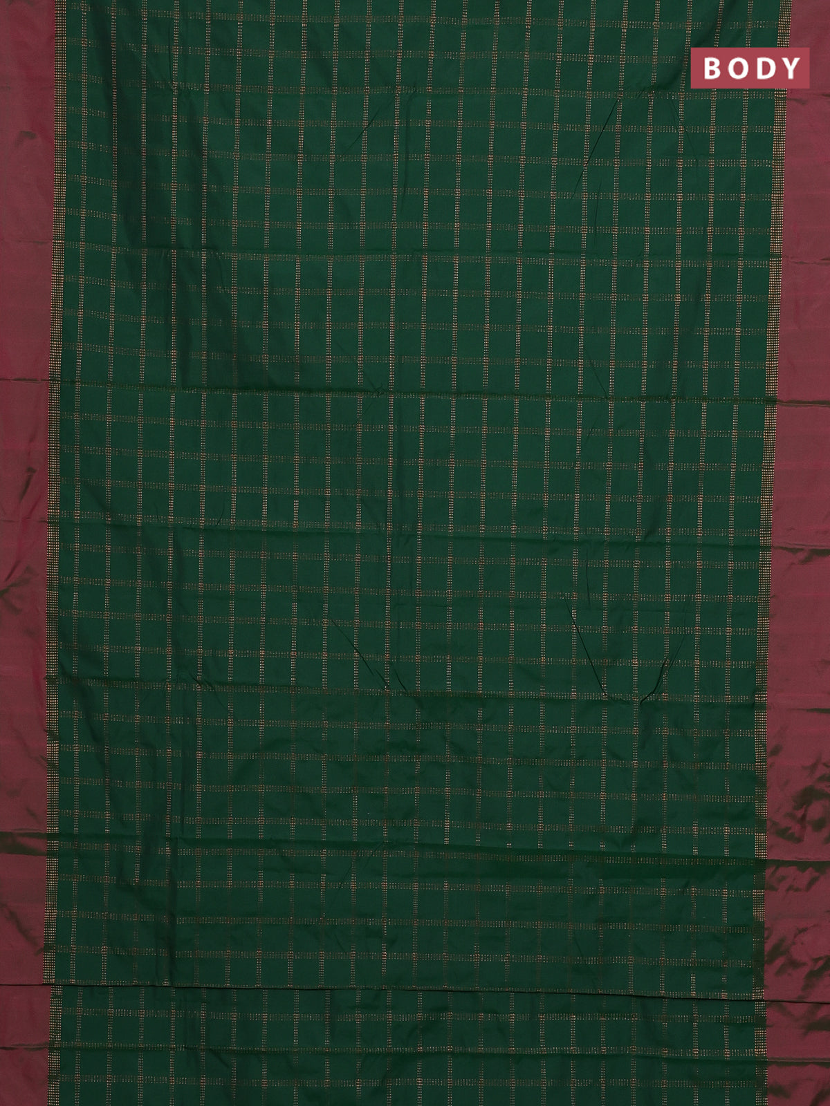 Arani semi silk saree green and dual shade of pink with allover copper zari checked pattern and copper zari woven simple border