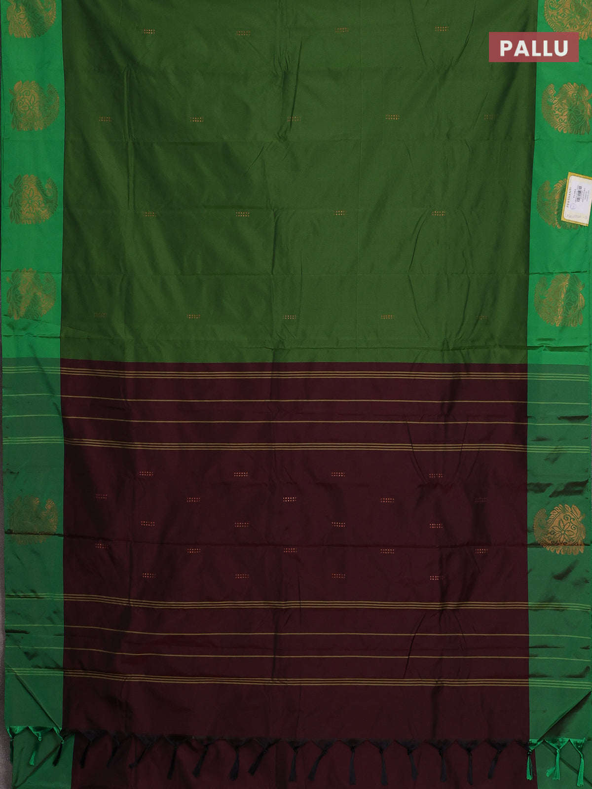 Arani semi silk saree green with zari woven buttas and paisley zari woven butta border
