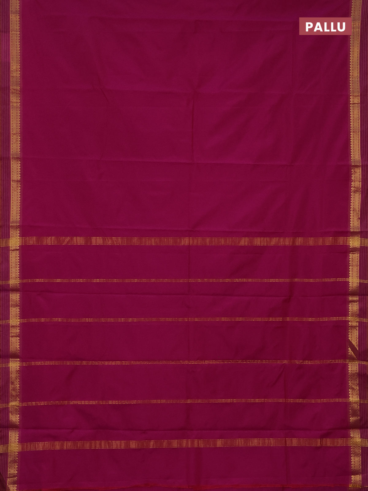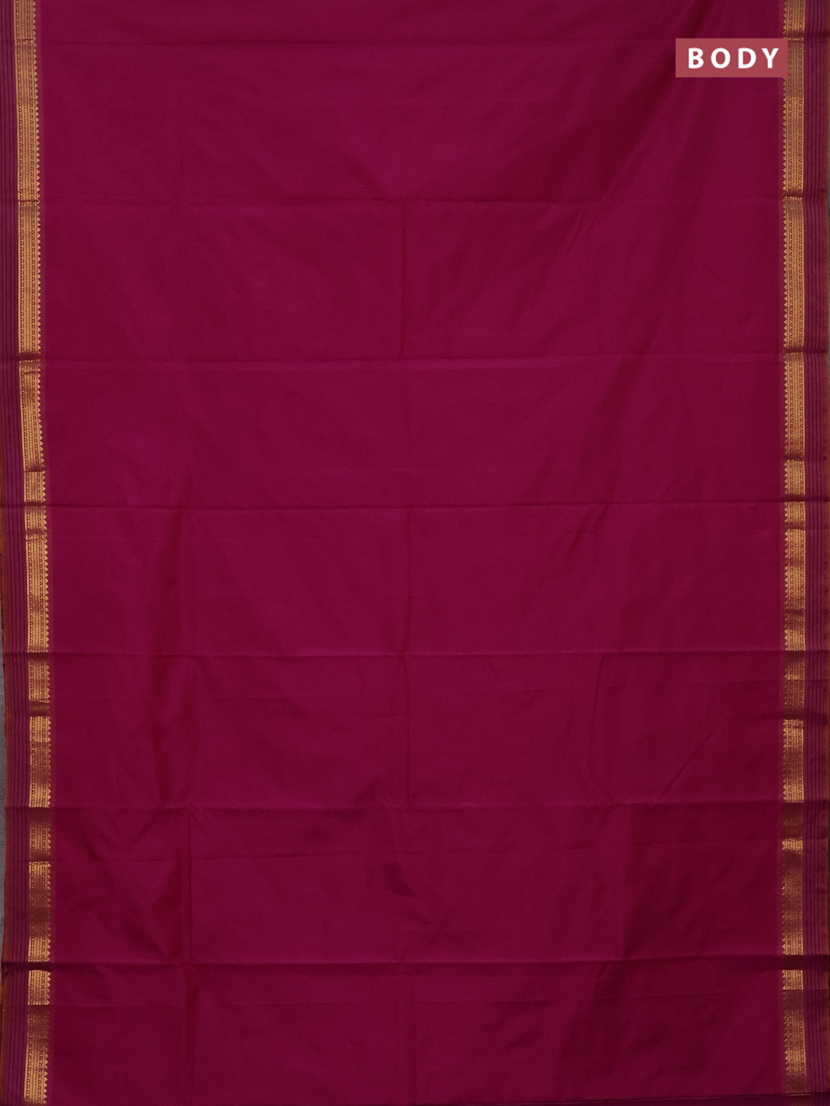 Arani semi silk saree magenta pink and dark mustard with plain body and zari woven simple border