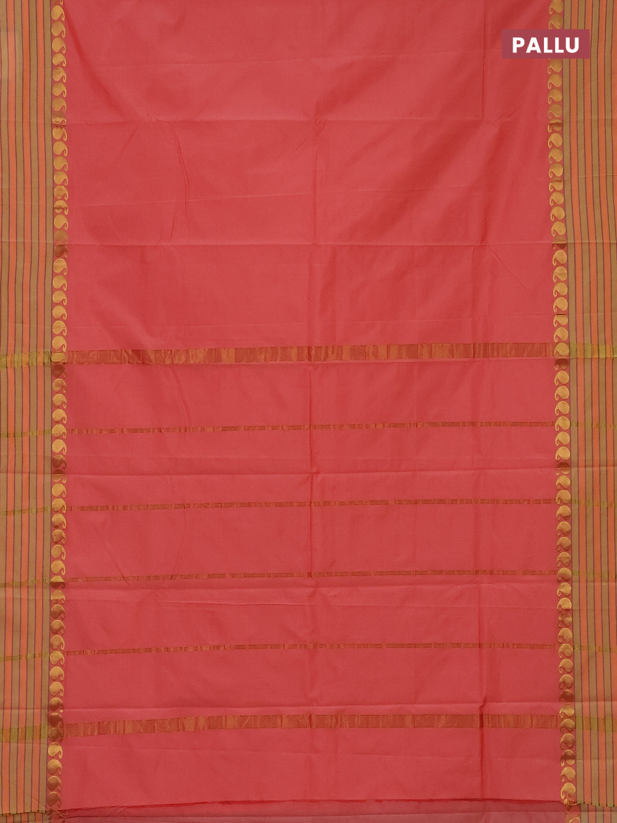 Arani semi silk saree peach orange and yellow shade with plain body and paisley zari woven simple border