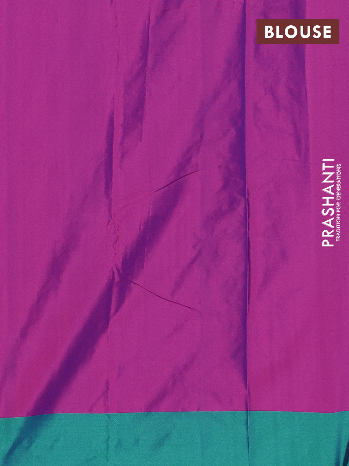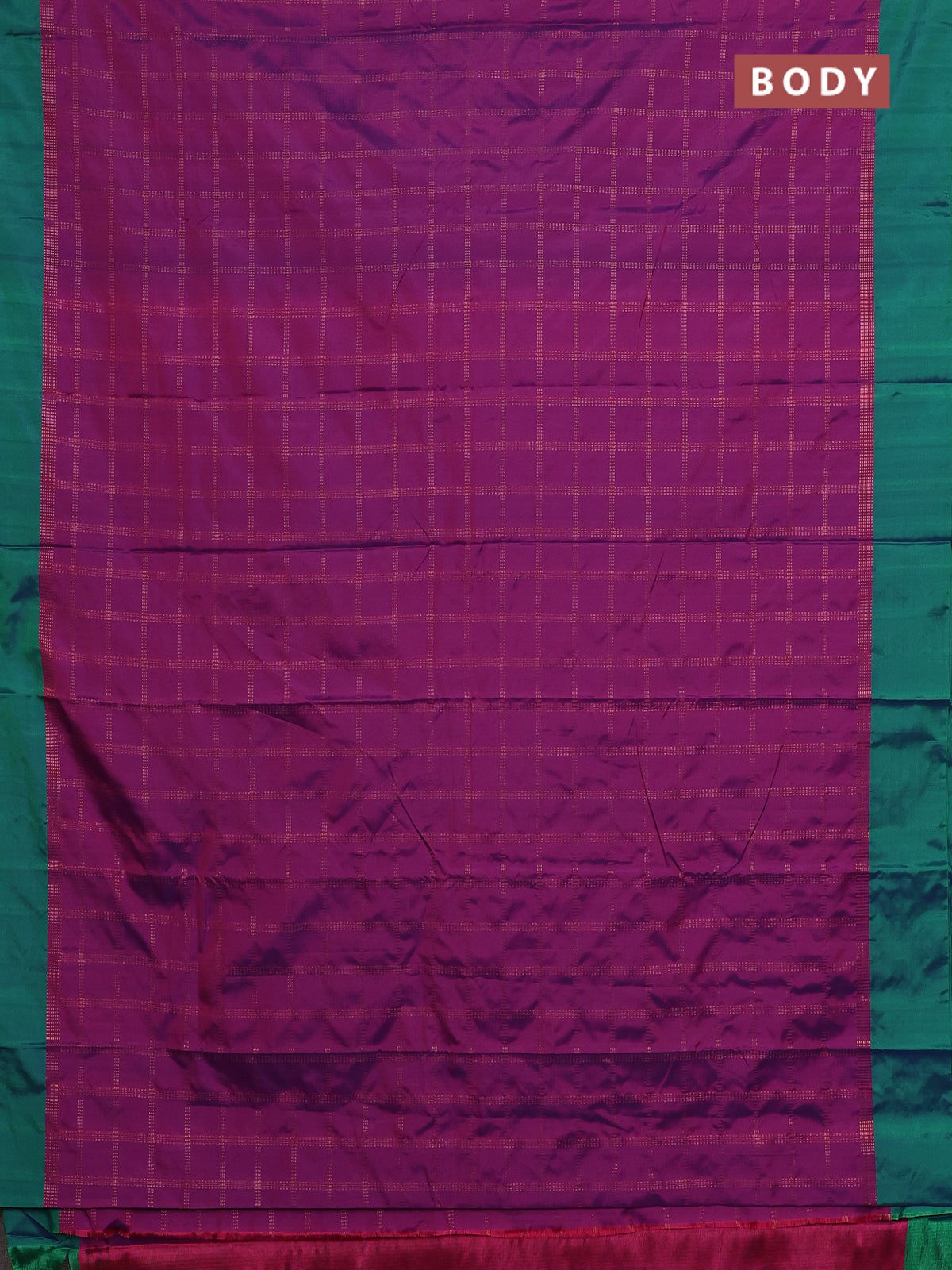 Arani semi silk saree purple and green with allover copper zari checked pattern and copper zari woven simple border