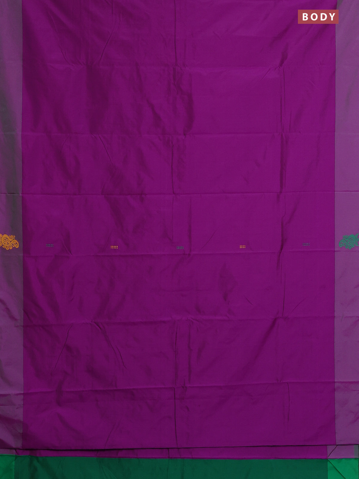 Arani semi silk saree purple shade and green with thread woven buttas and thread woven butta border