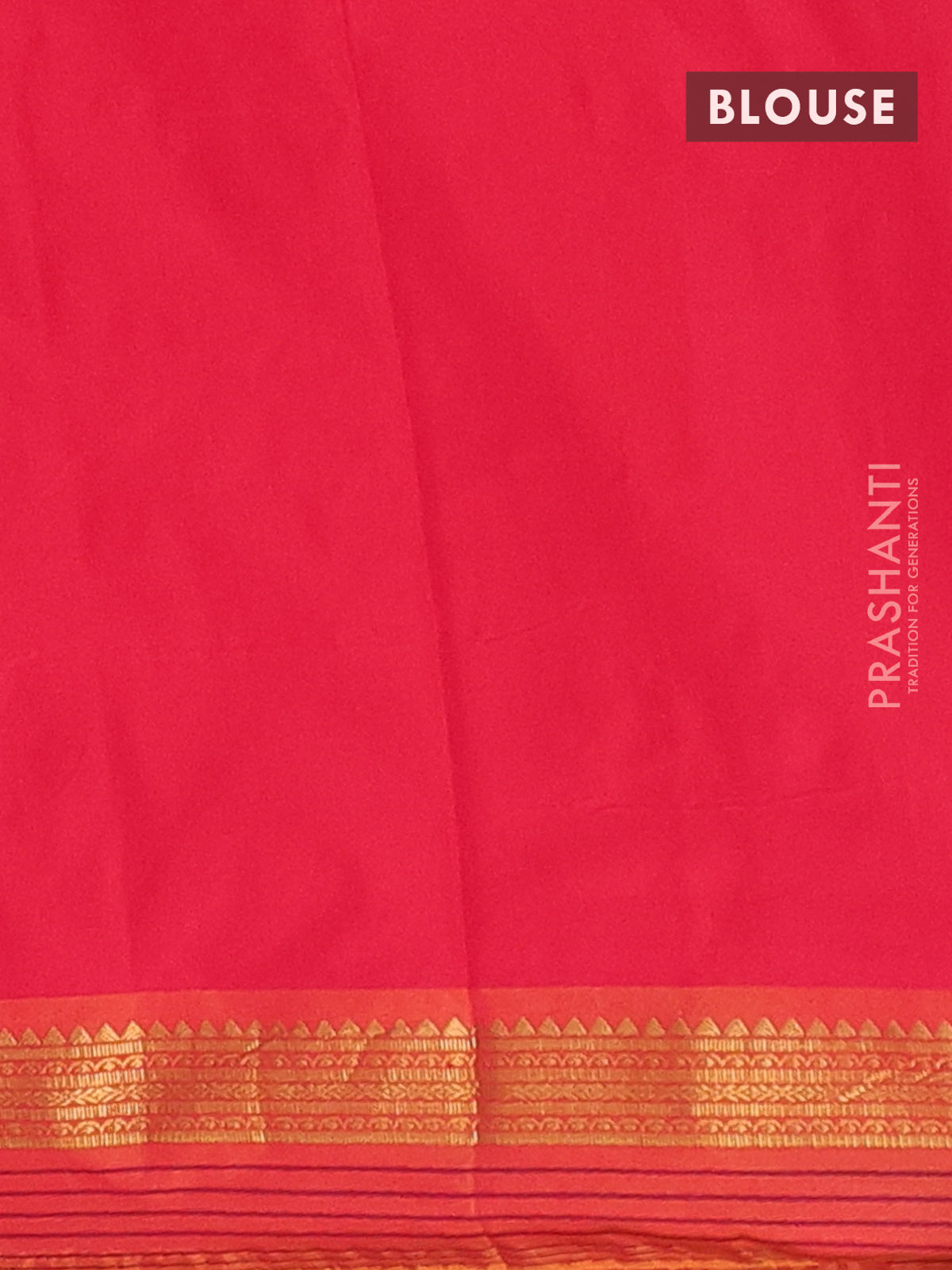 Arani semi silk saree red and dual shade of yellow with plain body and zari woven simple border