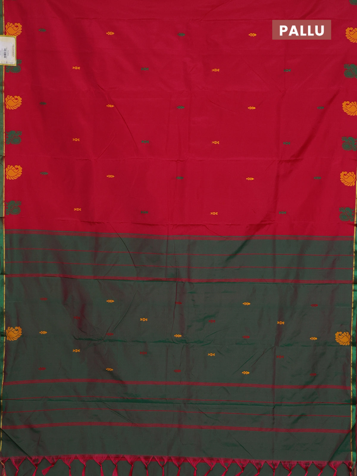 Arani semi silk saree reddish pink and green with thread woven buttas and thread woven butta border