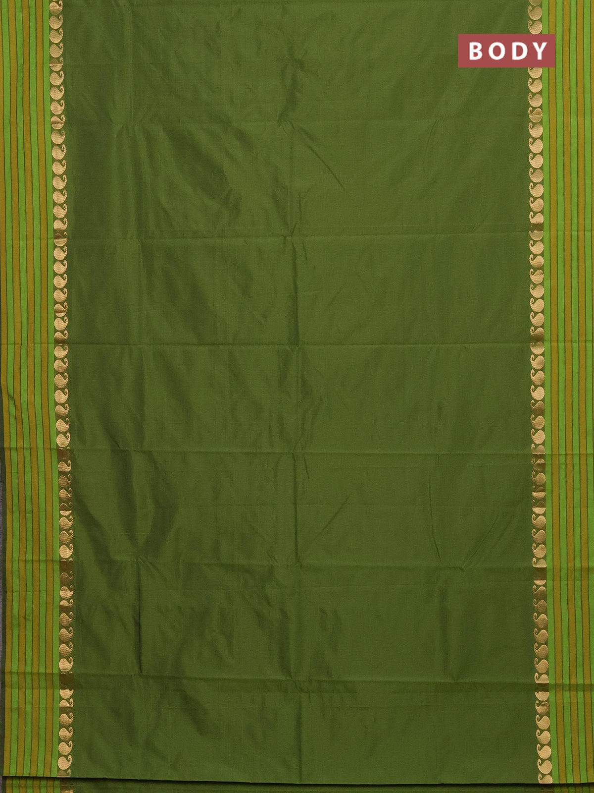 Arani semi silk saree sap green and mustard yellow with plain body and paisley zari woven simple border