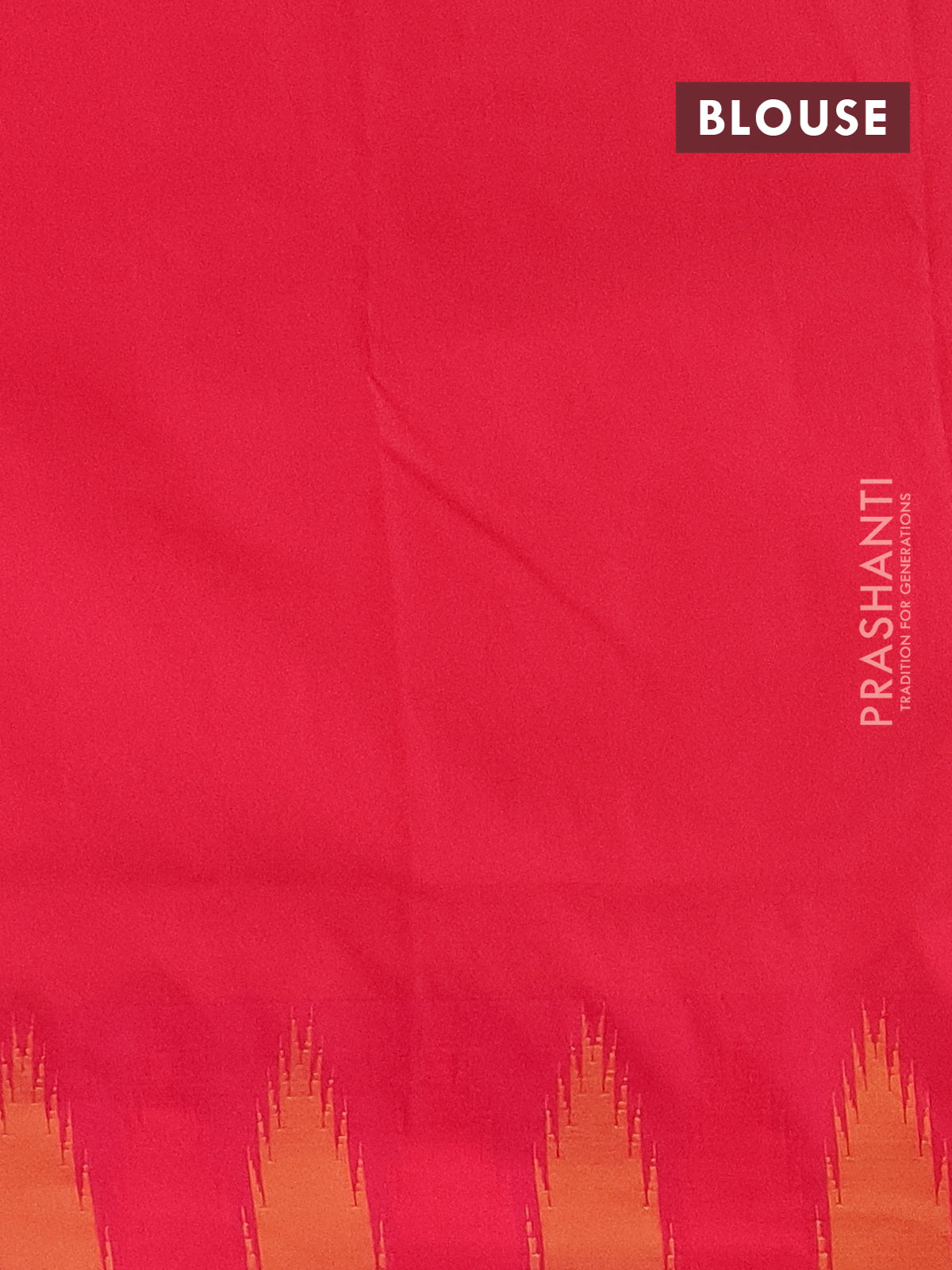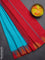 Arani semi silk saree teal blue and dual shade of bluish pink with plain body and temple design border