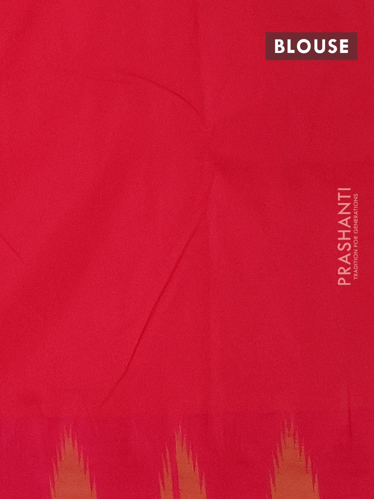 Arani semi silk saree teal blue and pink with plain body and temple design border