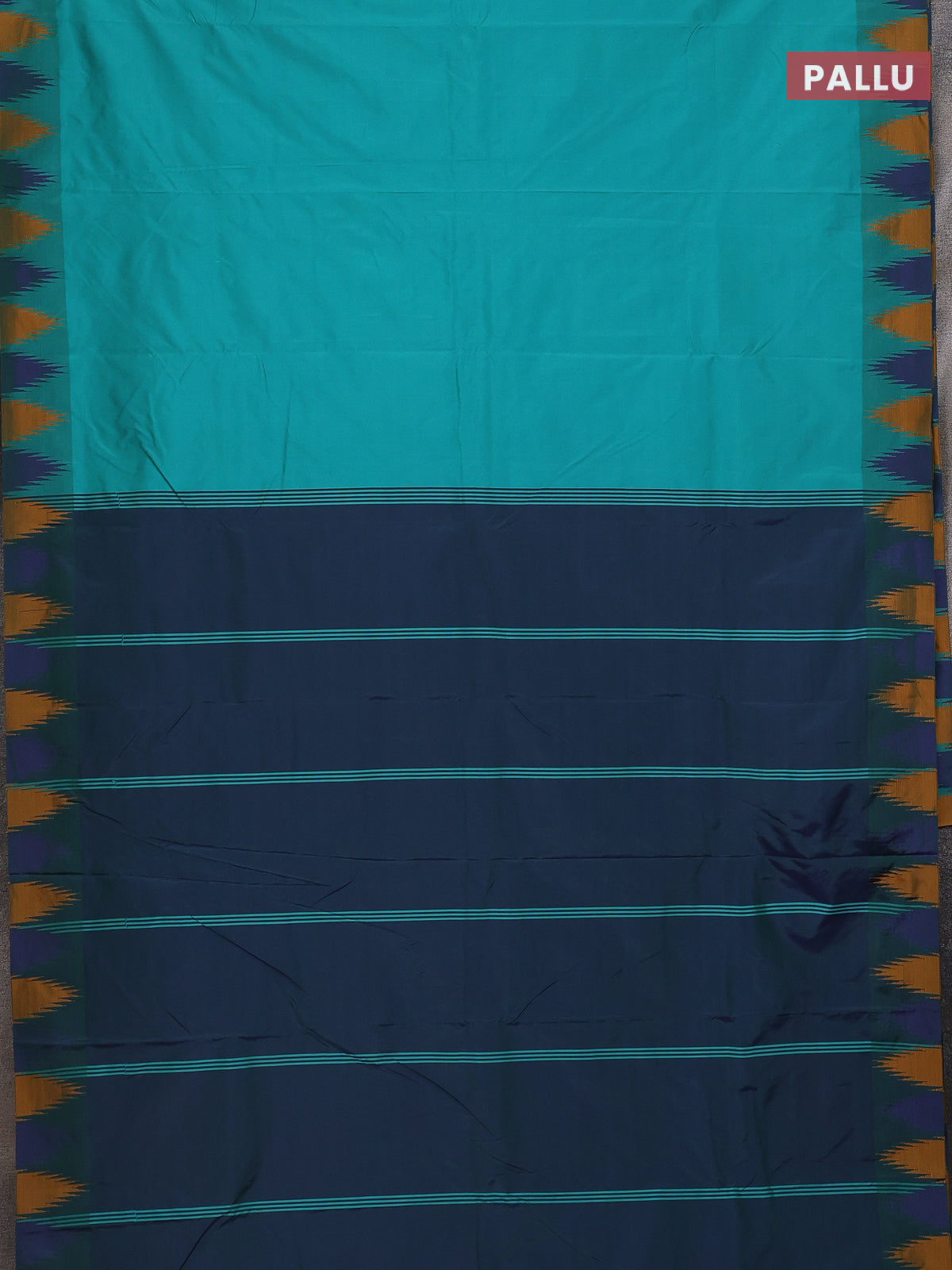 Arani semi silk saree teal green and blue mustard with plain body and temple design border