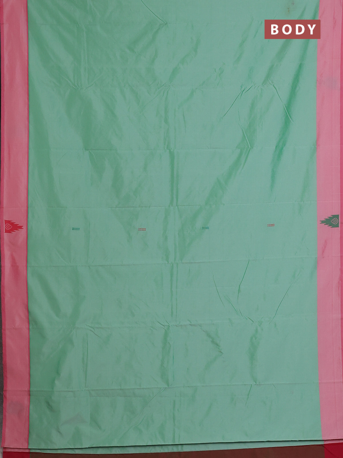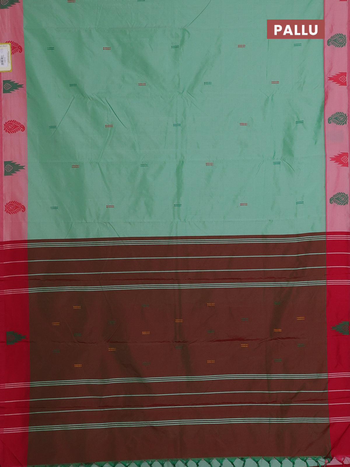 Arani semi silk saree teal green and dual shade of pink with thread woven buttas and thread woven butta border
