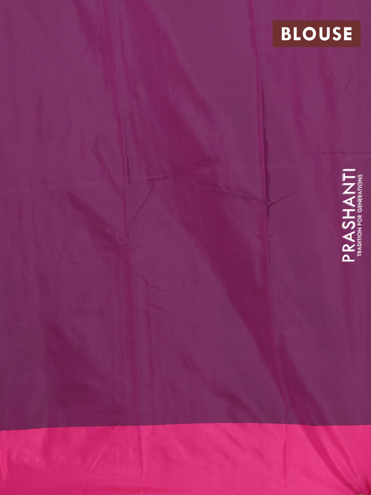 Arani semi silk saree wine shade and pink with allover copper zari checked pattern and copper zari woven simple border