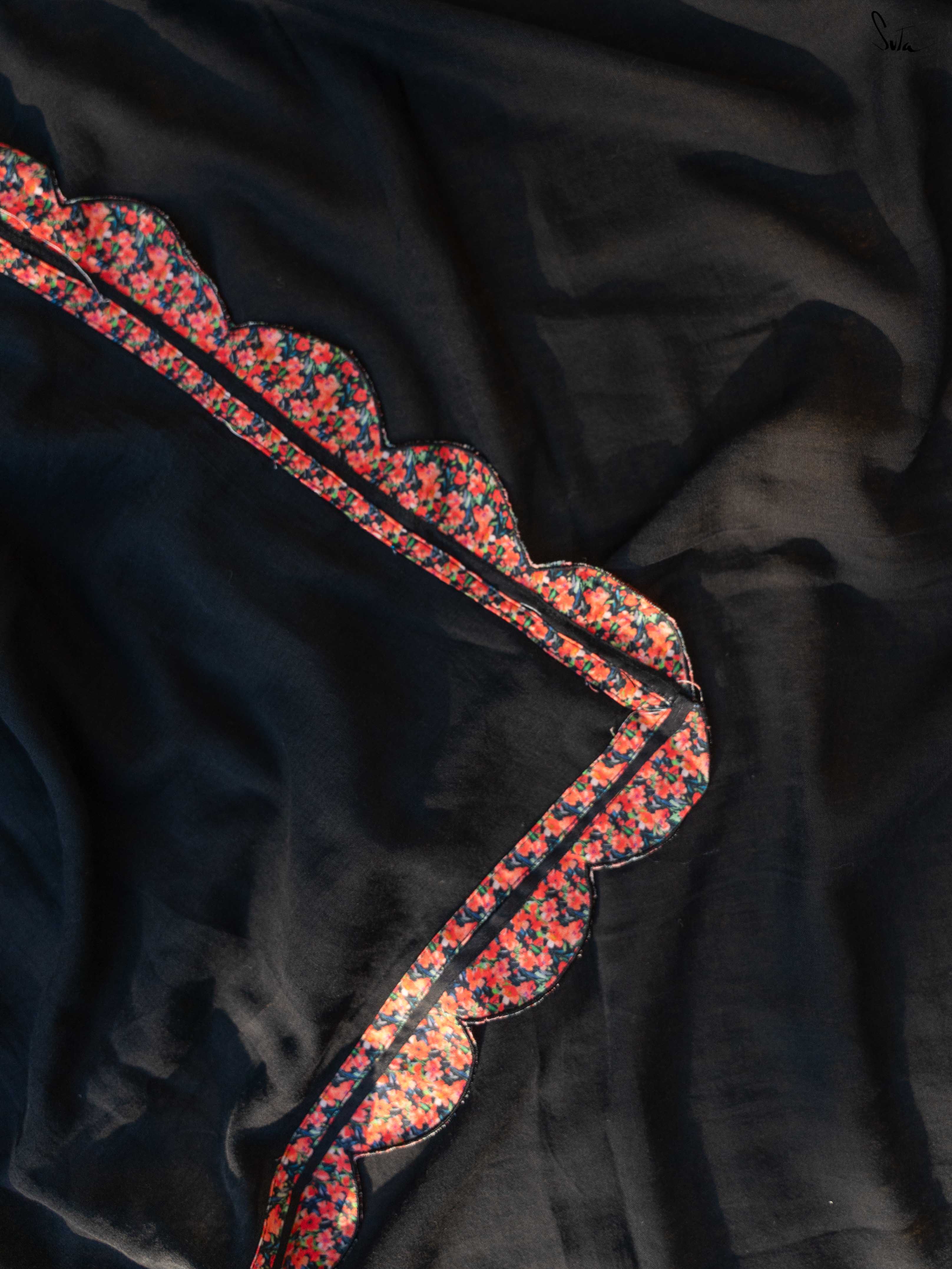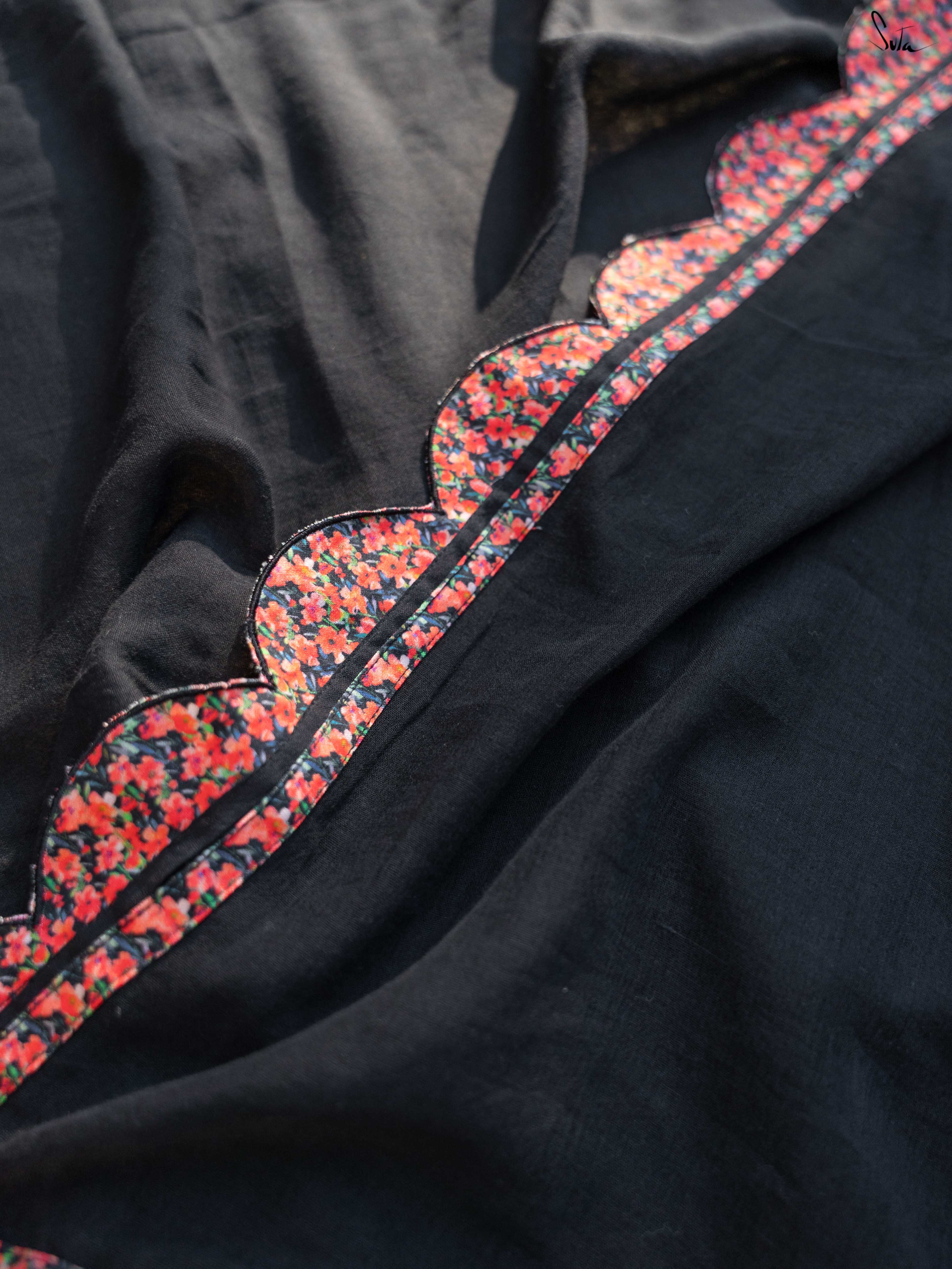 Softness, with a striking edge. Arjun Laila is woven in breathable cotton that feels light on the skin and drapes with complete ease. The solid black base brings depth and drama, while the attached multicolour floral printed scallop border softens the look with movement and colour. Effortless to wear and strong in presence, this is comfort that doesn’t fade into the background.