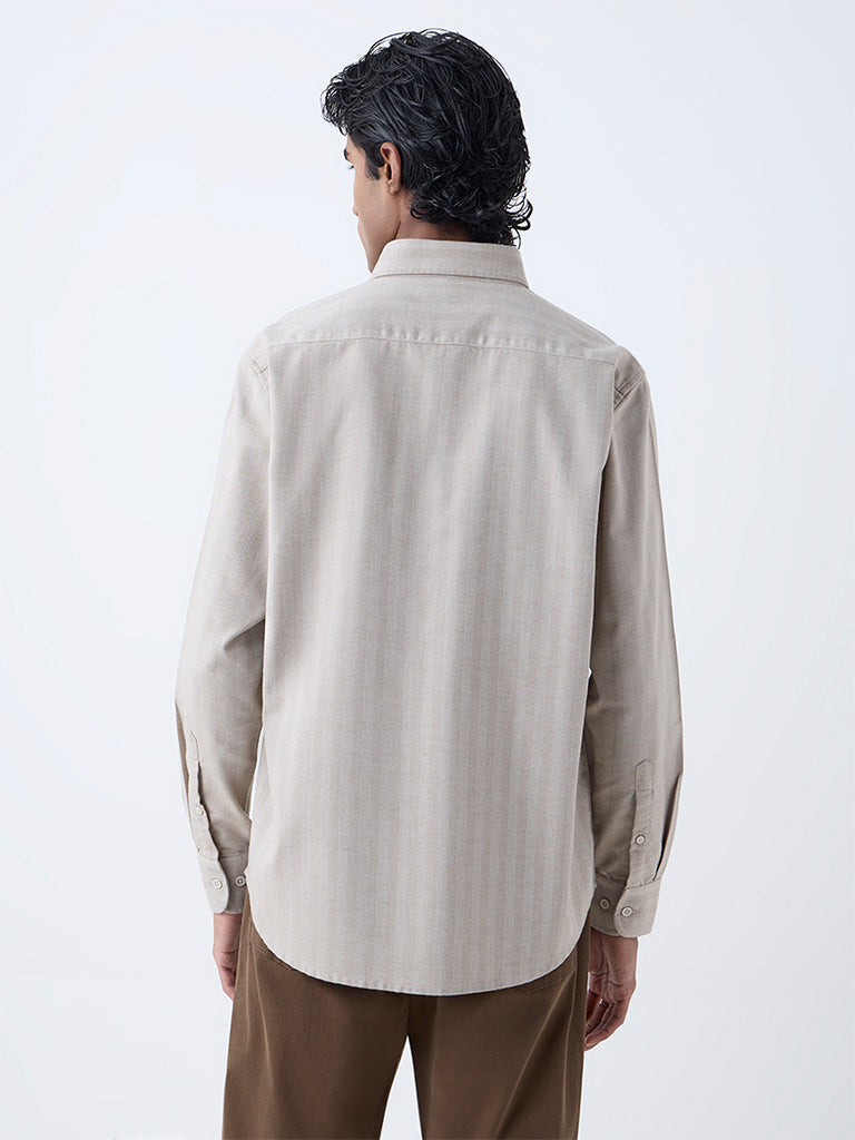 Ascot Beige Self-Striped Relaxed-Fit Cotton-Blend Shirt