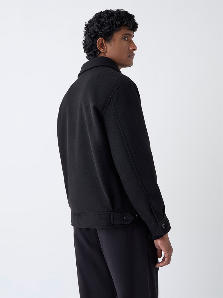 Ascot Black Solid Relaxed-Fit Suede Jacket