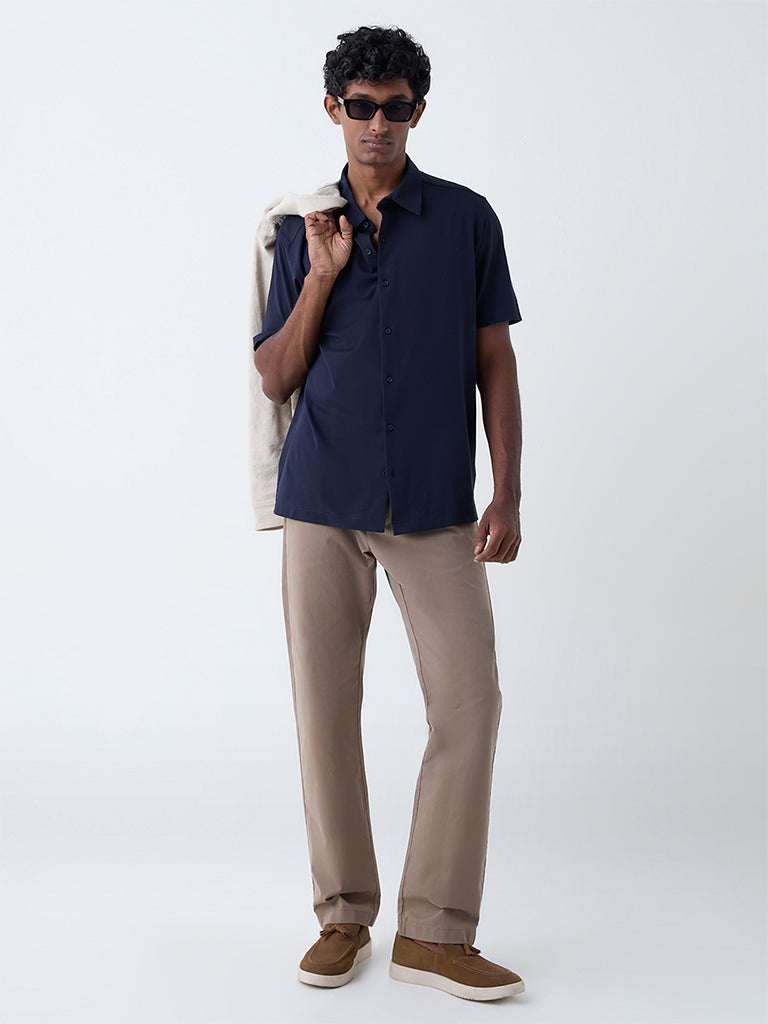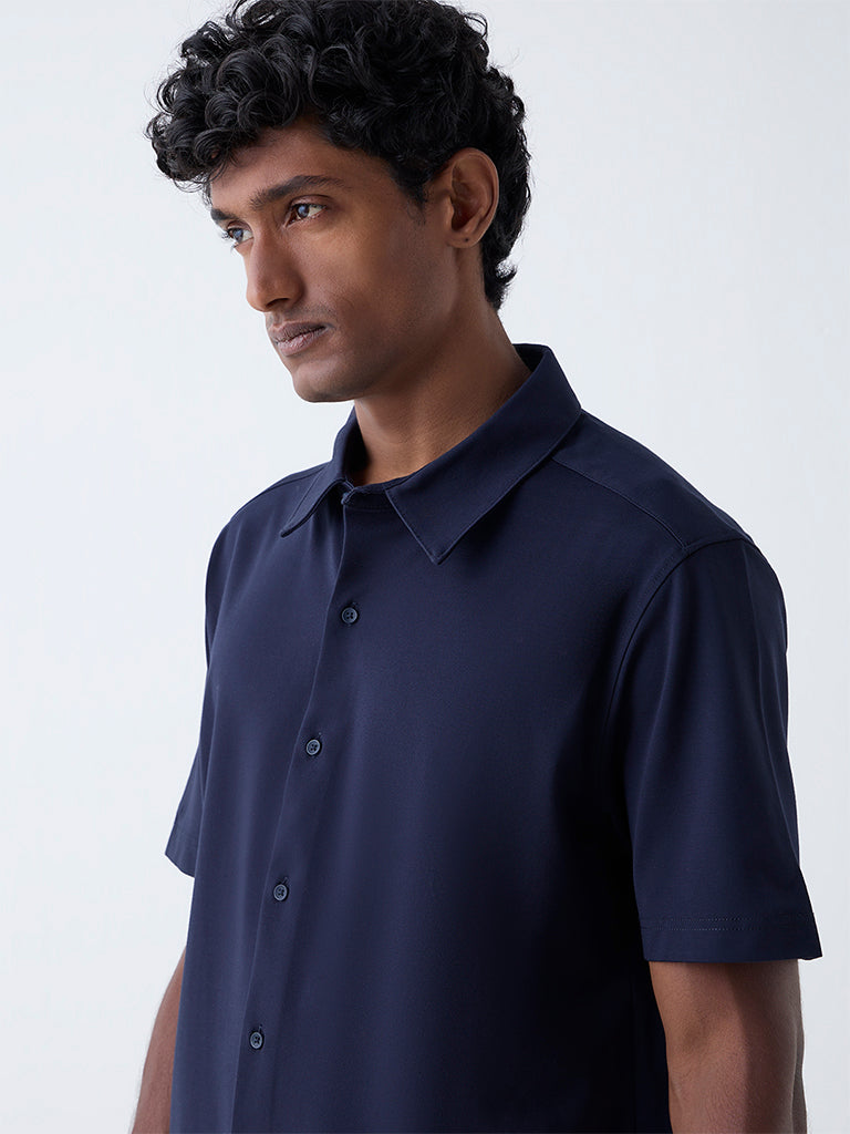 An elevated essential for the discerning wardrobe, this navy shirt from Ascot channels luxury through simplicity. Cut from a breathable fabric for a lightweight feel, it’s framed with a cutaway collar, short sleeves, and button-up front. The result is casualwear that carries timeless refinement.