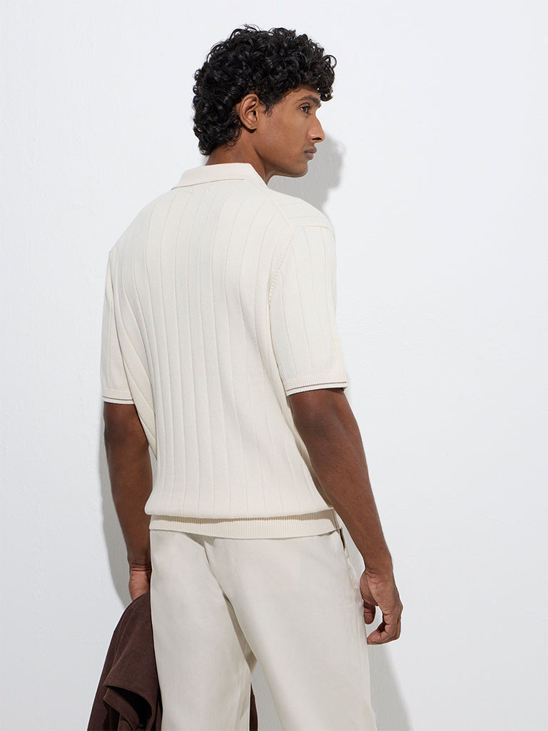 Ascot Off-White Relaxed-Fit Quarter-Zip Polo T-Shirt