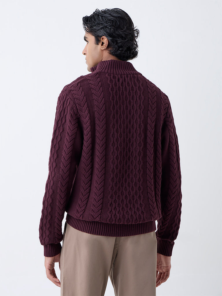 Ascot Wine Relaxed Fit Cotton Three-Quarter Zip Sweater