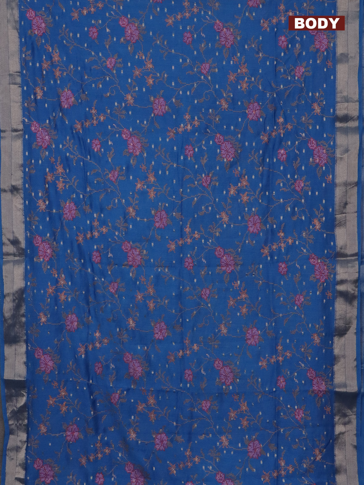 Assam silk saree cs blue with zari buttas & embroidery work and zari woven border
