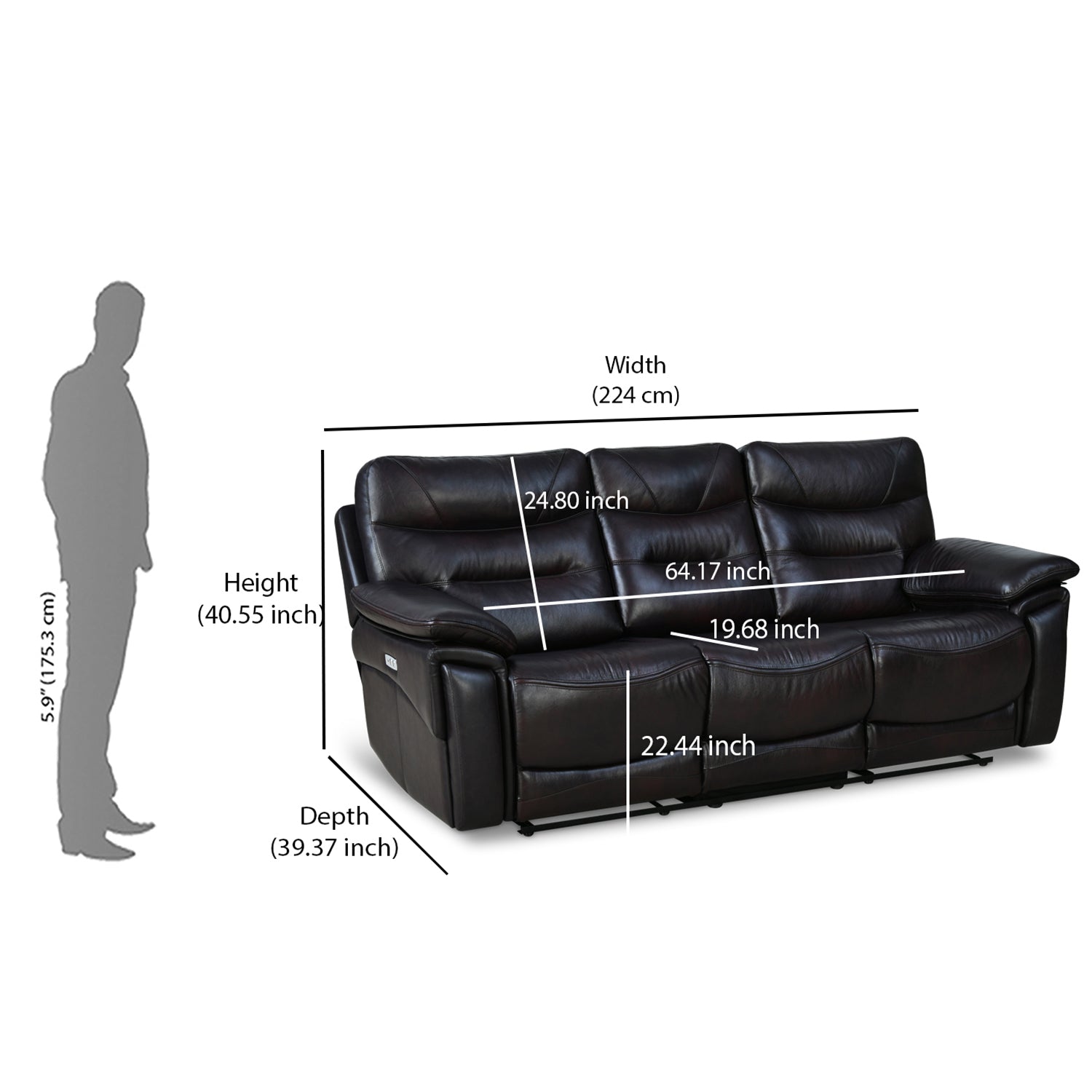 Bakewell 3 Seater Leather Electric Recliner (Brown)