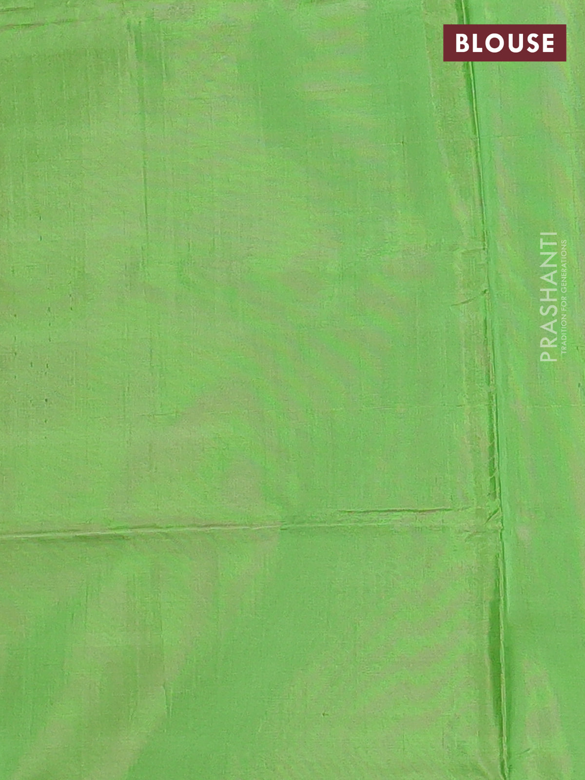 Banana pith saree blue and light green with allover thread woven butta weaves in borderless style