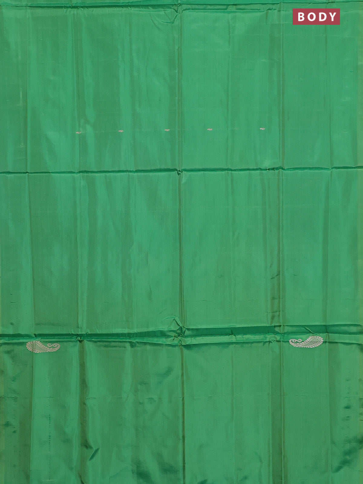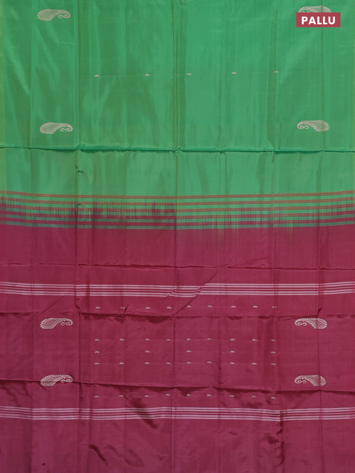 Banana pith saree green and maroon with thread woven buttas in borderless style