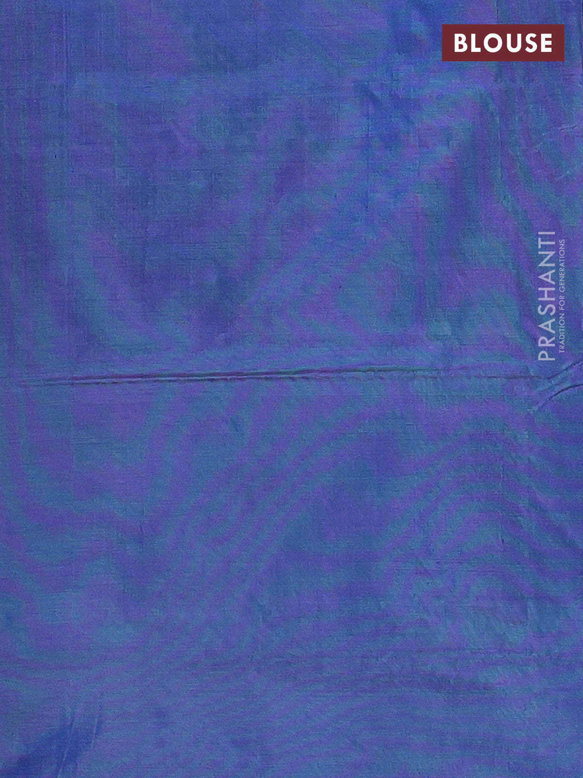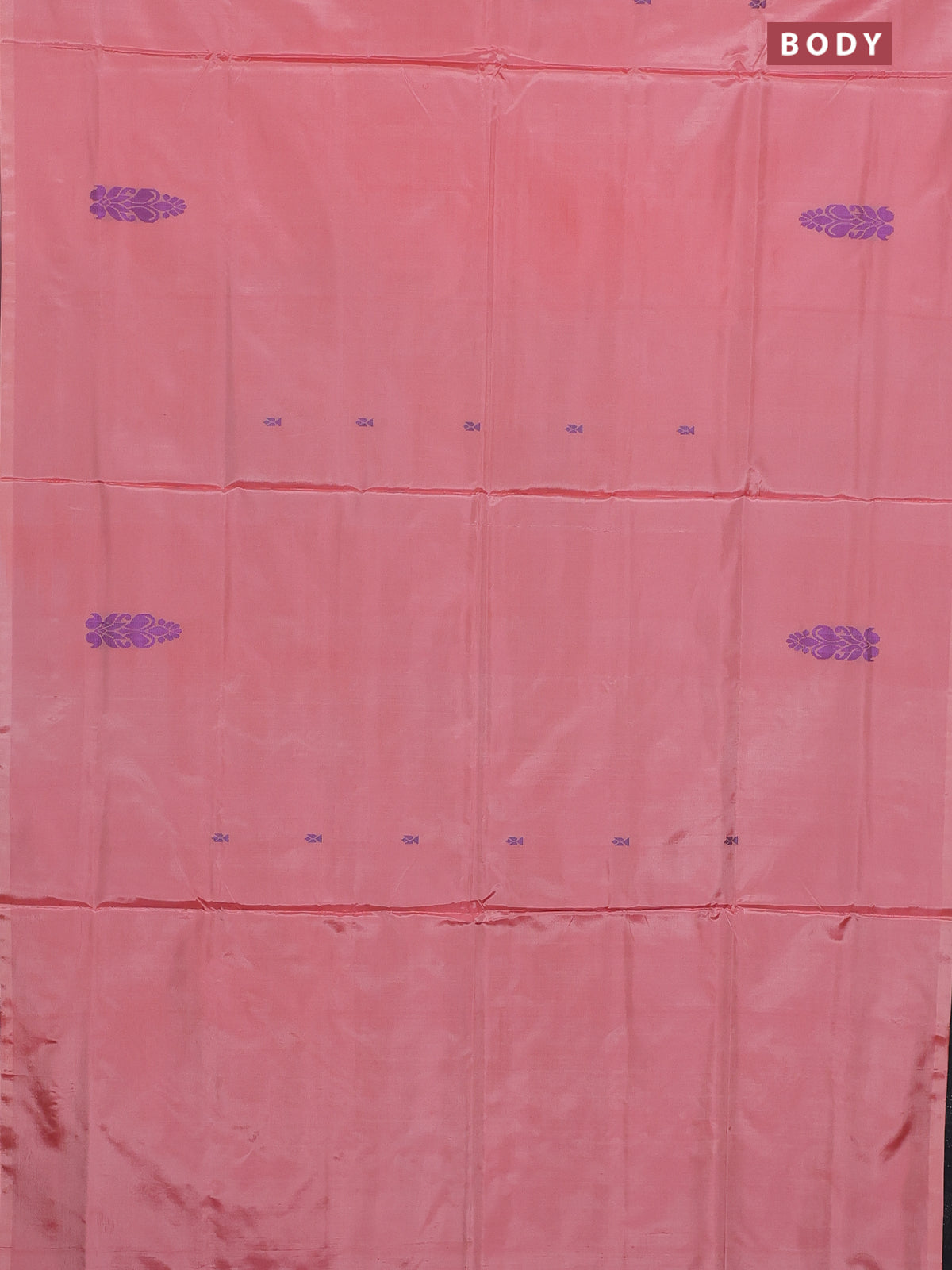 Banana pith saree peach shade and blue with thread woven buttas in borderless style