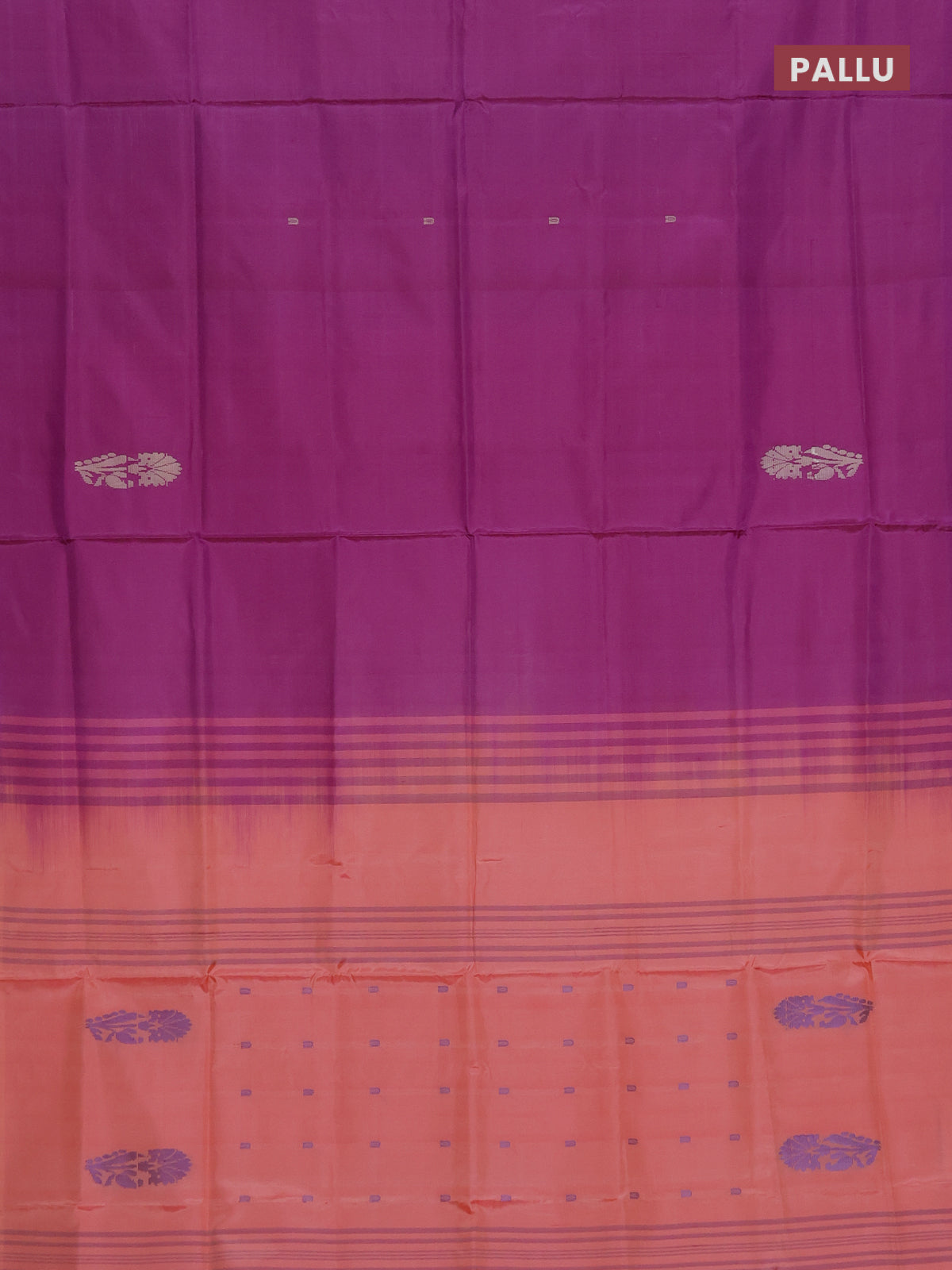 Banana pith saree purple and peach orange with thread woven buttas in borderless style