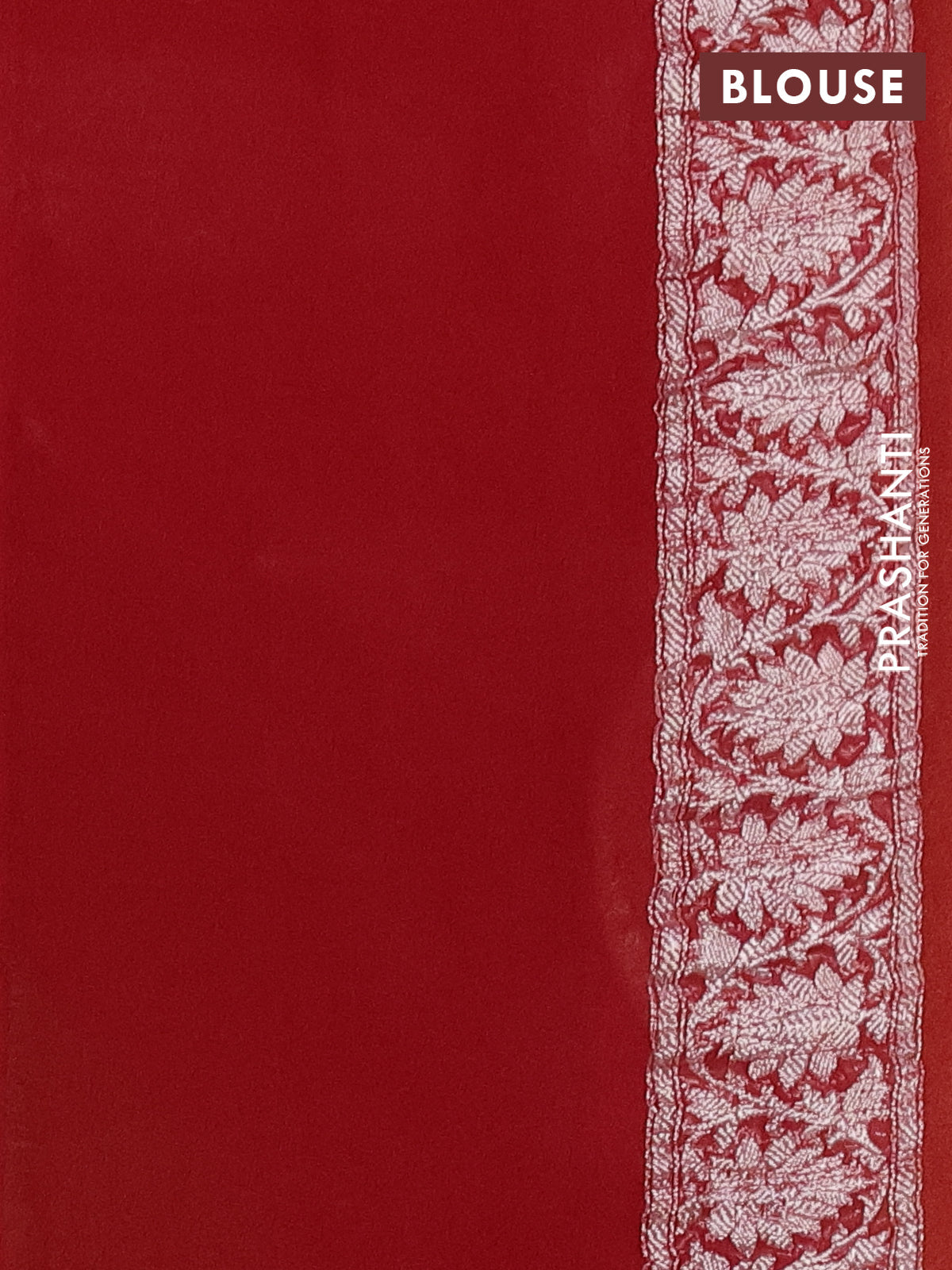 Banarasi chiffon silk saree pale yellow and maroon with silver zari woven buttas and silver zari woven border