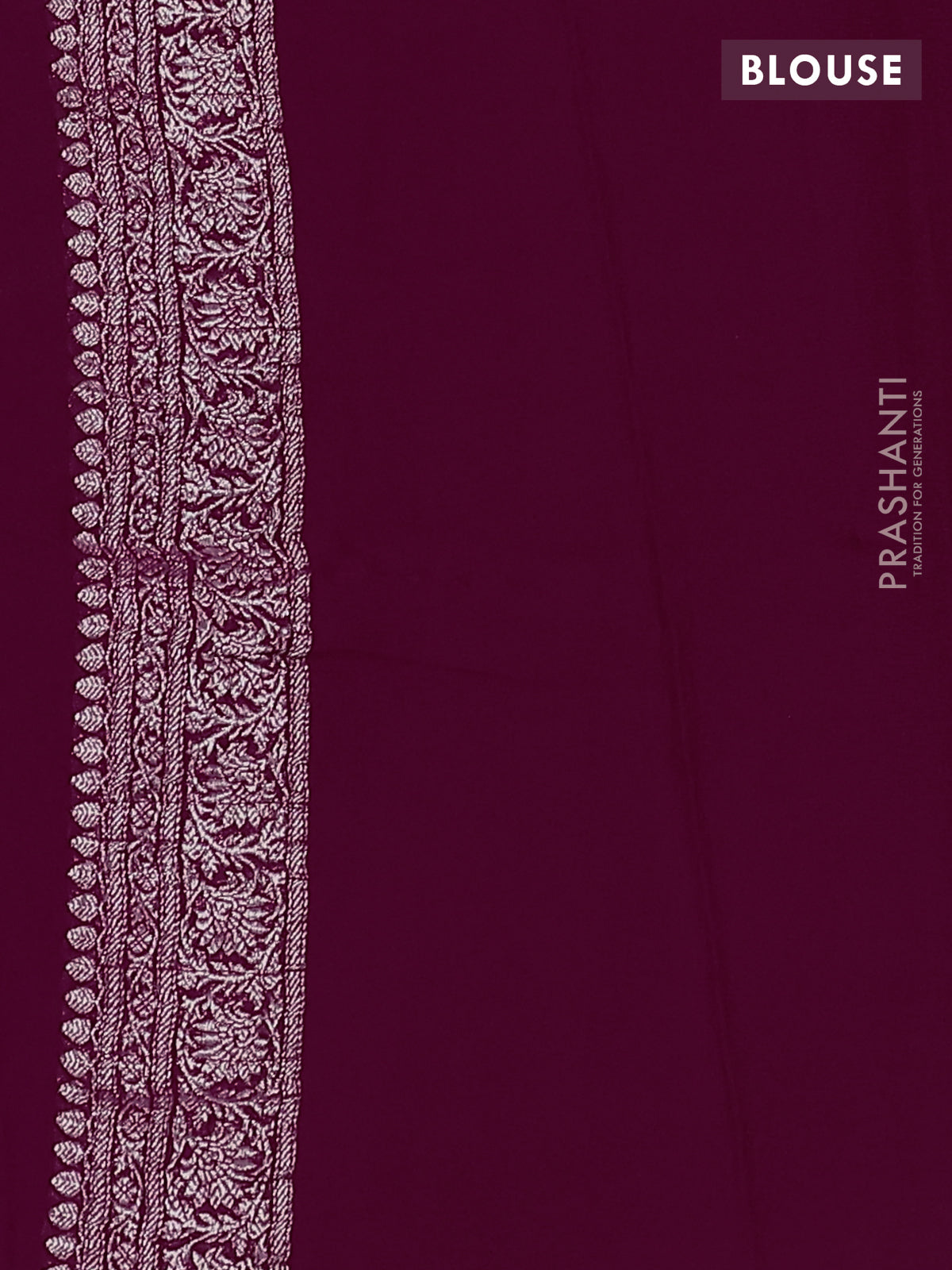 Banarasi chiffon silk saree wine shade and maroon with silver zari woven buttas and floral silver zari woven border