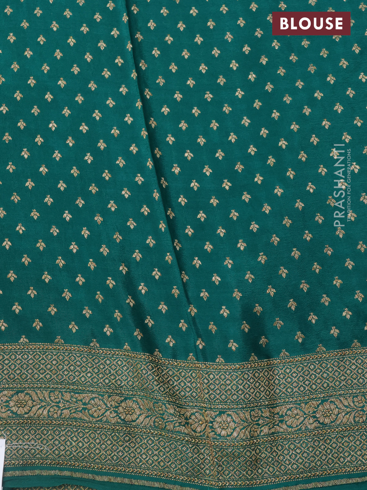 Banarasi crepe saree green and cs blue with allover geometric zari weaves and woven border