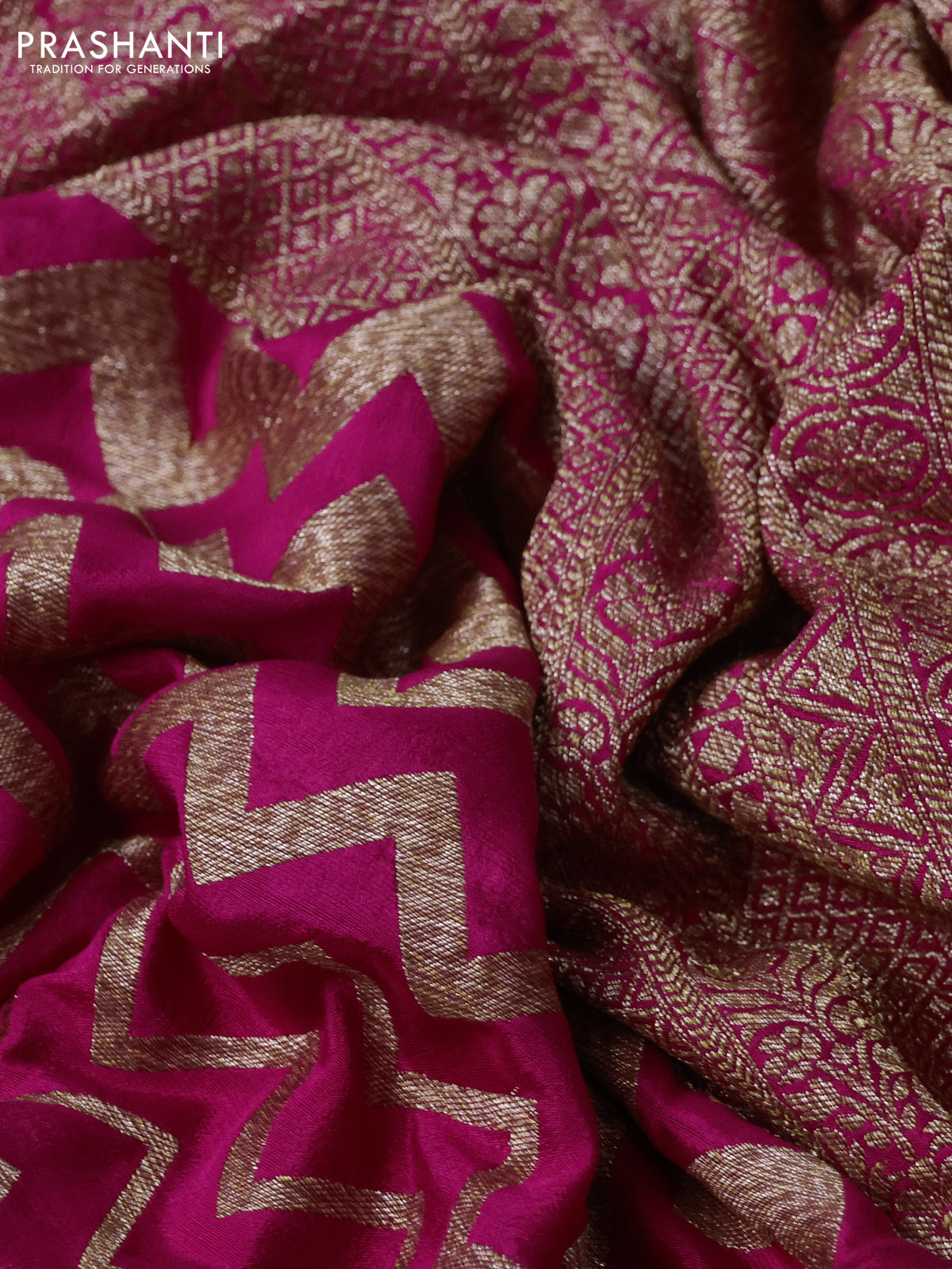 Banarasi crepe saree pink and red with allover geometric zari weaves and woven border