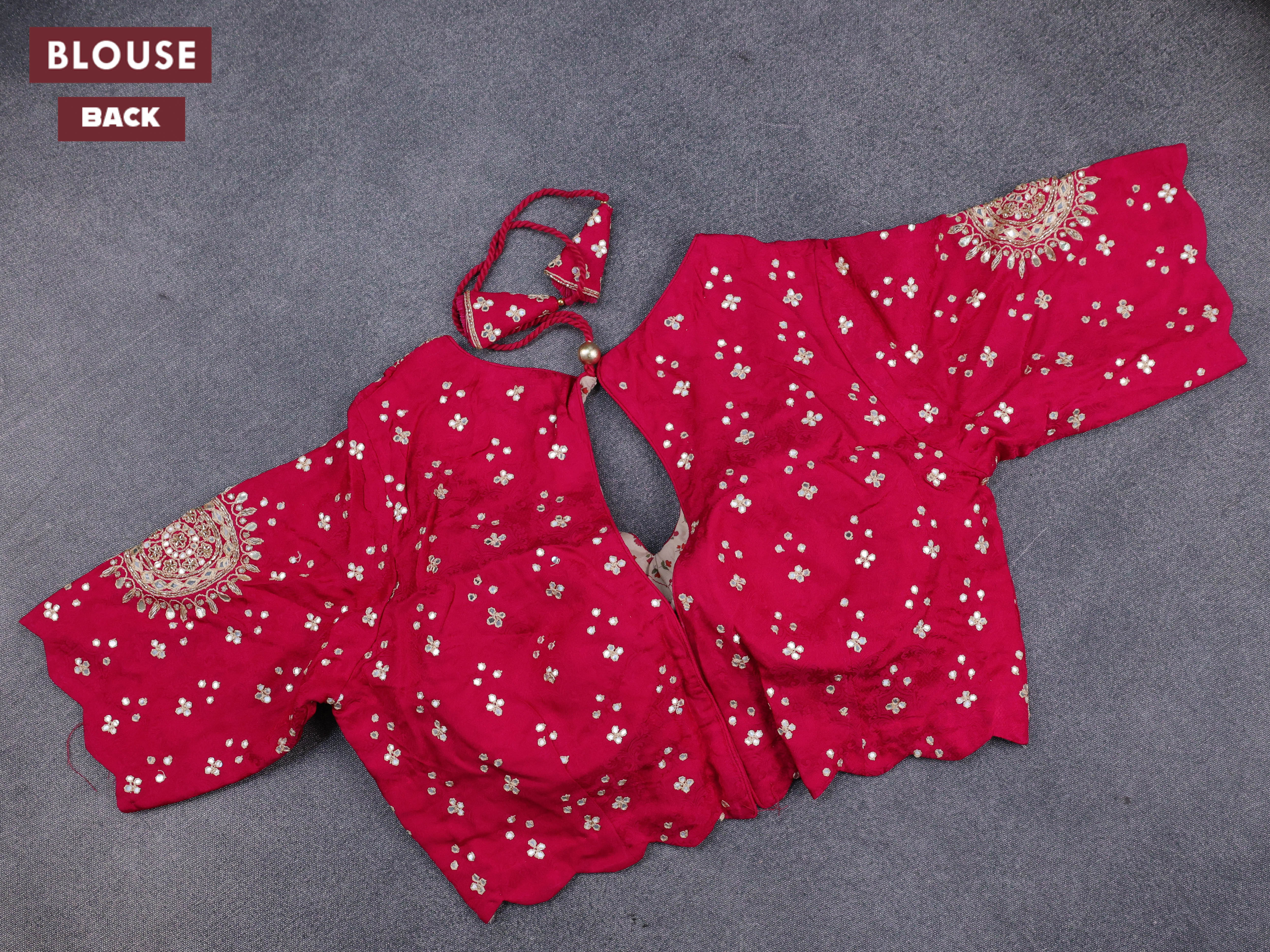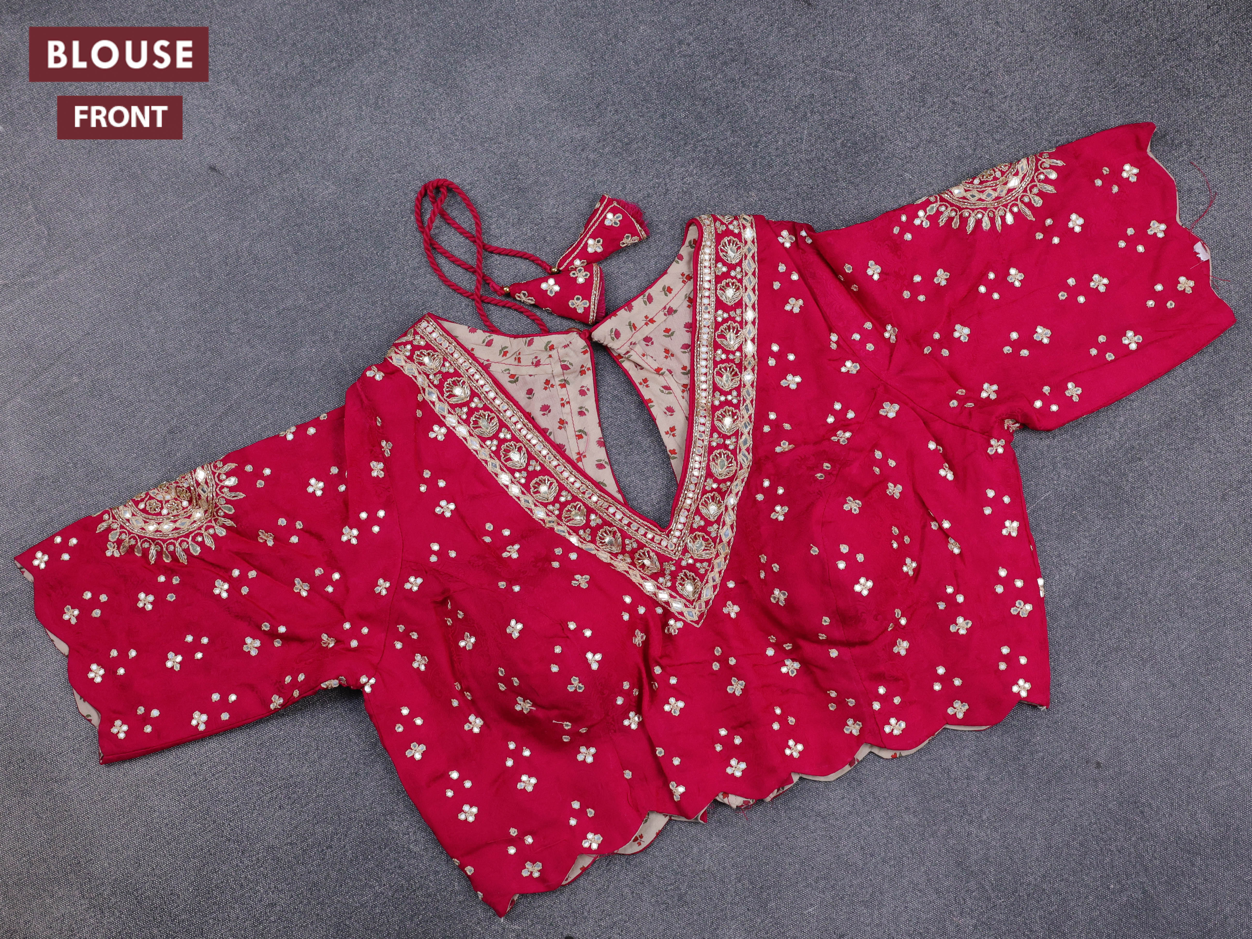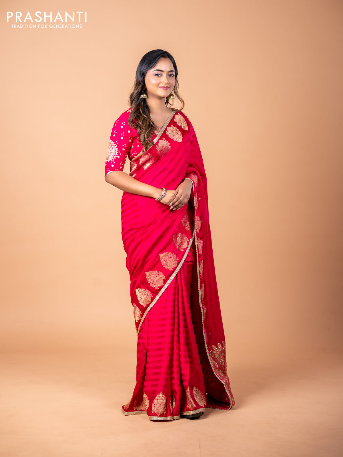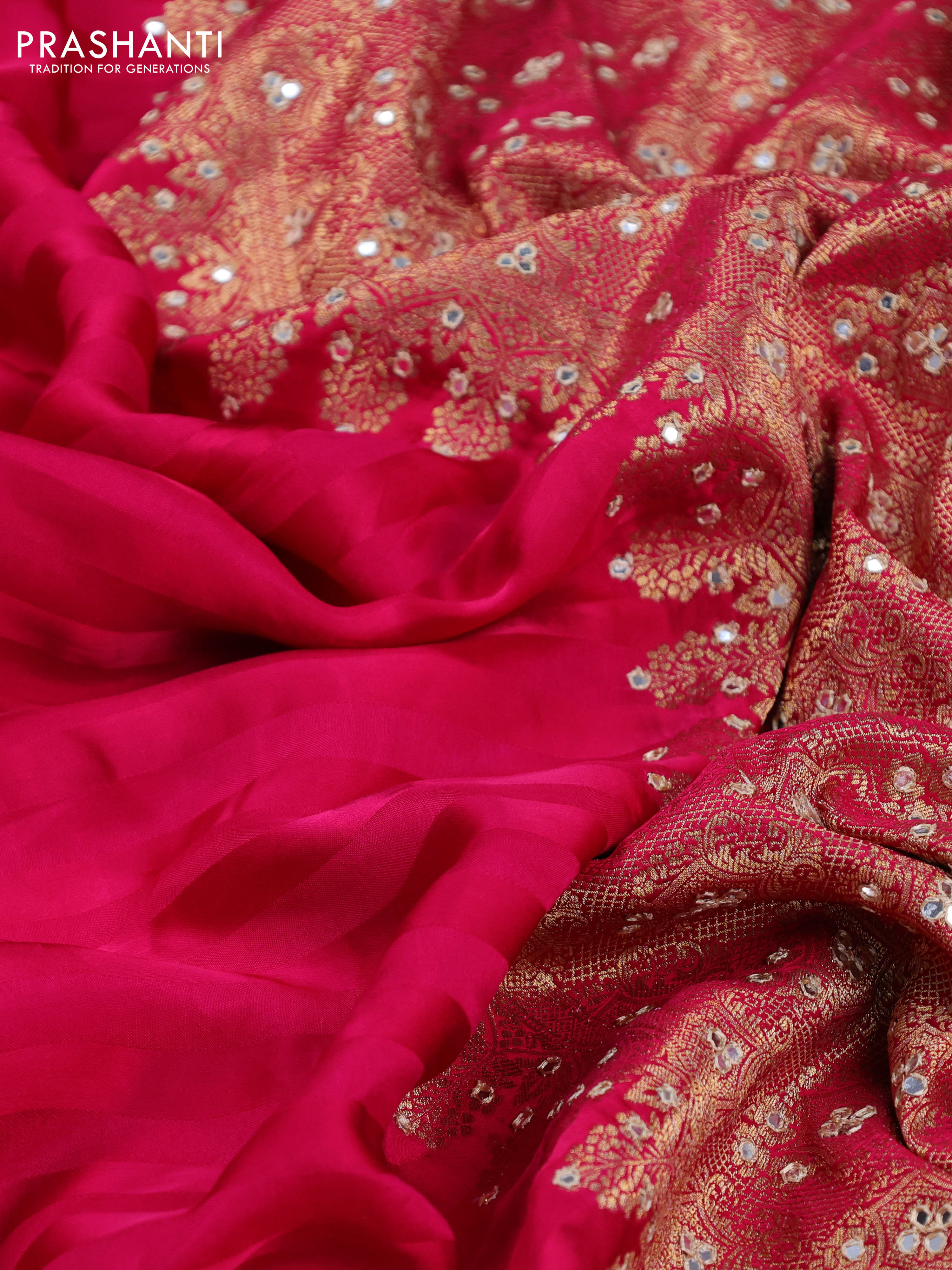 Banarasi crepe saree pink with stripes pattern and mirror work & banarasi style border