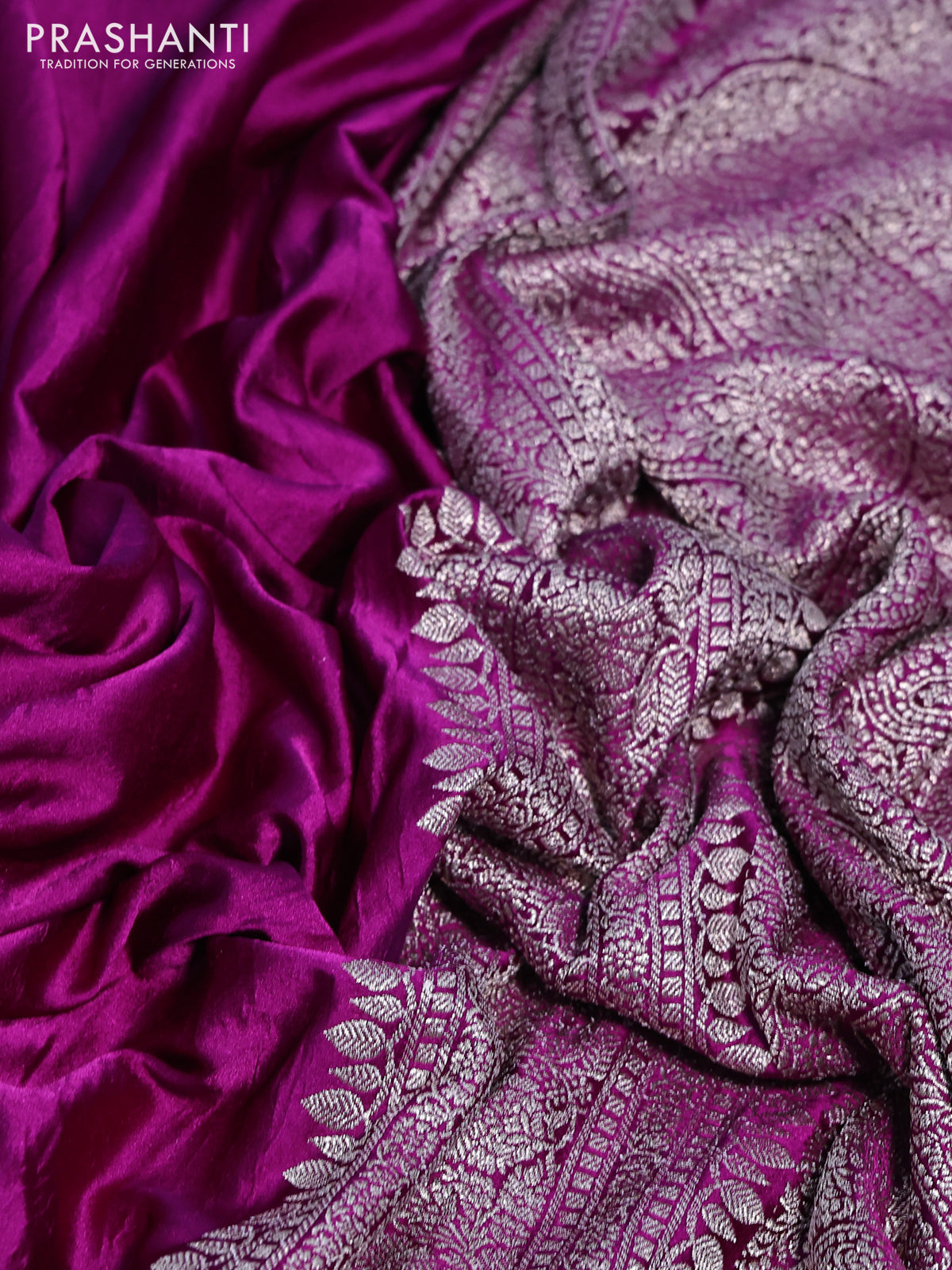 Banarasi crush crepe saree purple with plain body and zari woven border