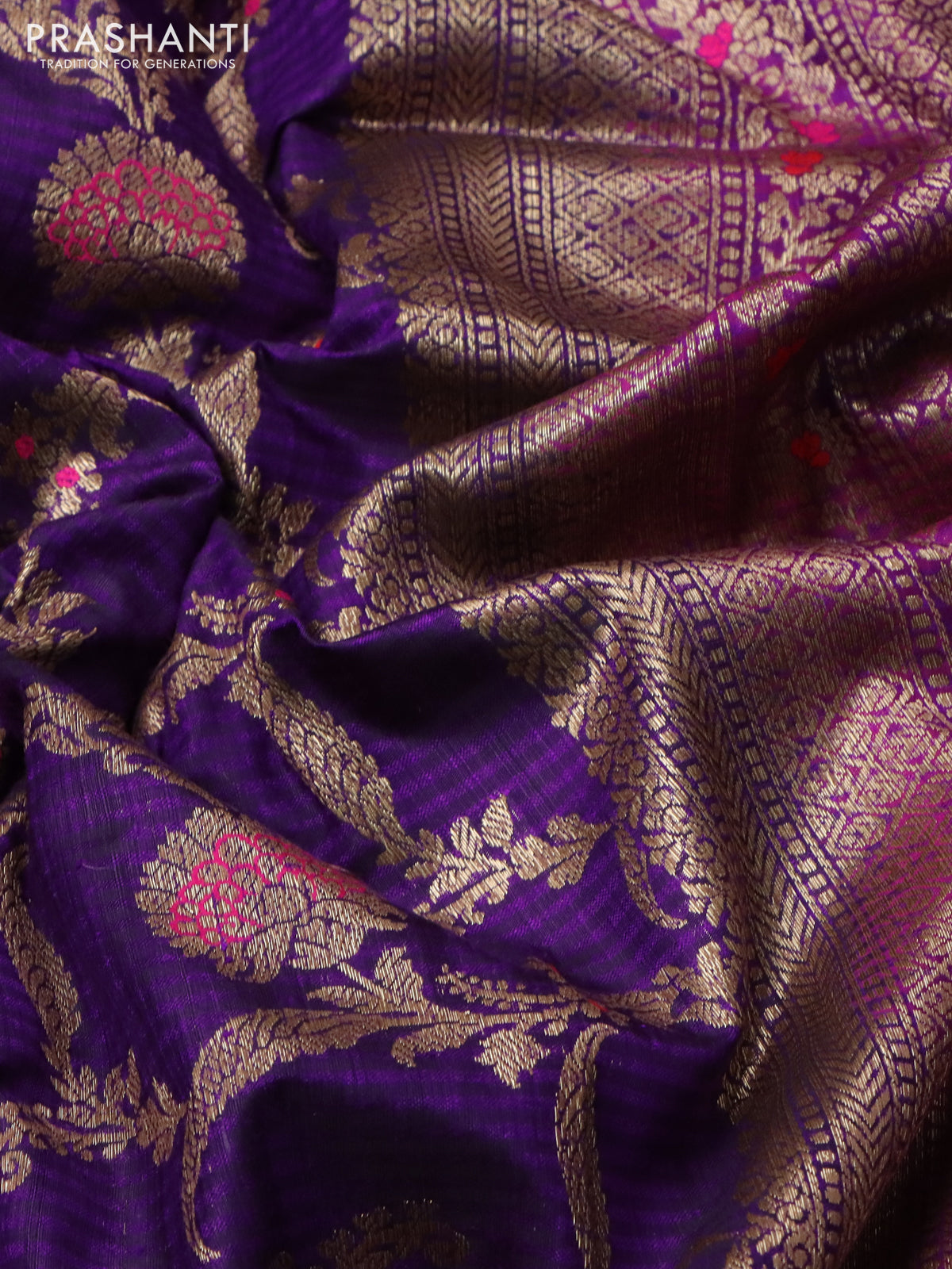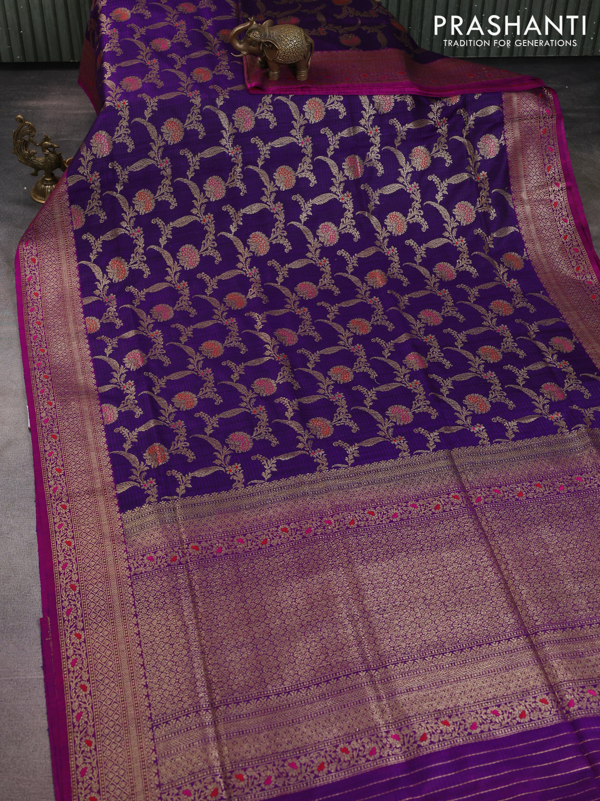 Banarasi dupion silk saree violet and purple with allover thread & zari floral weaves and woven border