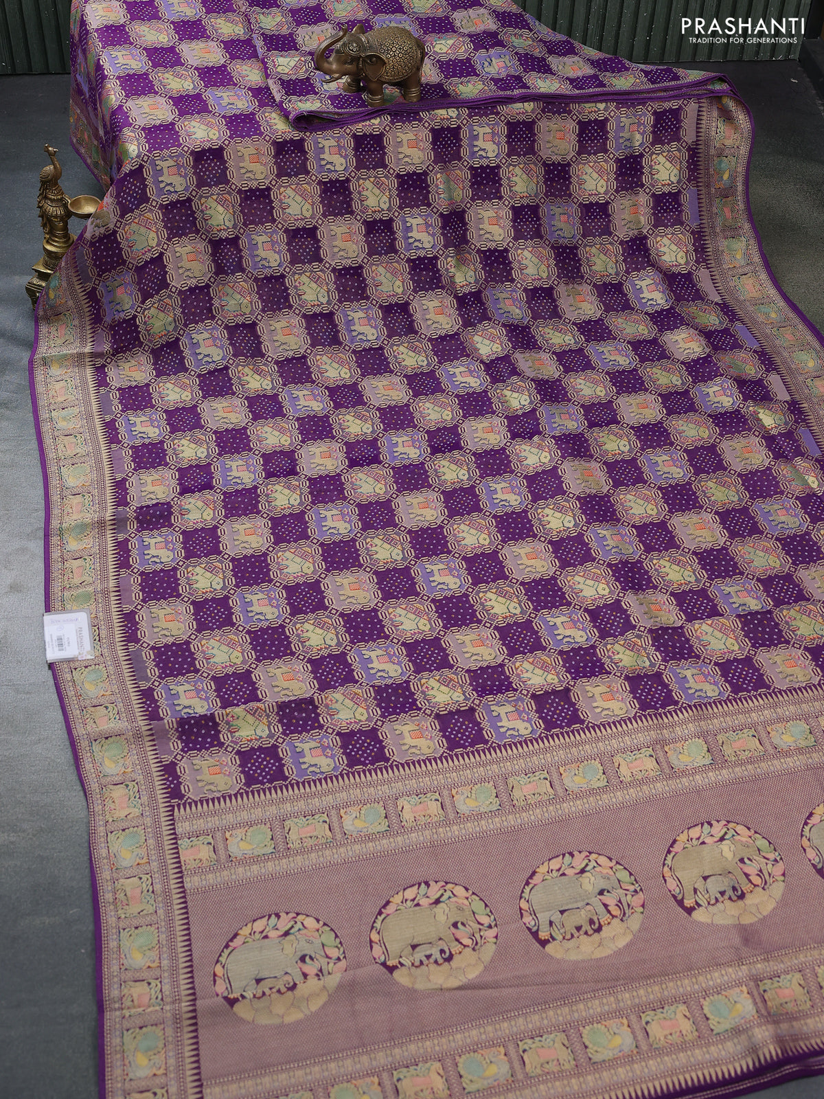 Banarasi georgette saree purple with bandhani prints & mina weaves