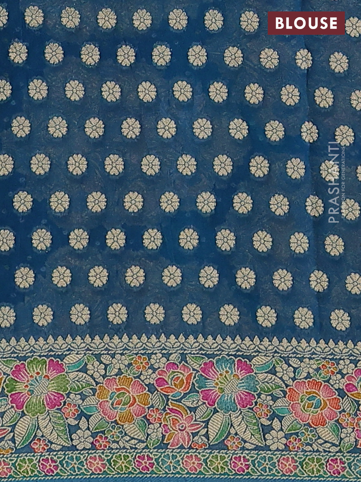 Banarasi georgette saree teal blue with bandhani prints & mina weaves