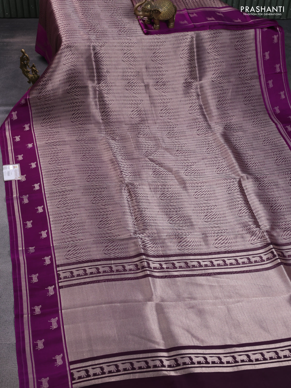 Banarasi katan silk saree purple with allover silver zari woven brocade weaves and zari woven butta border