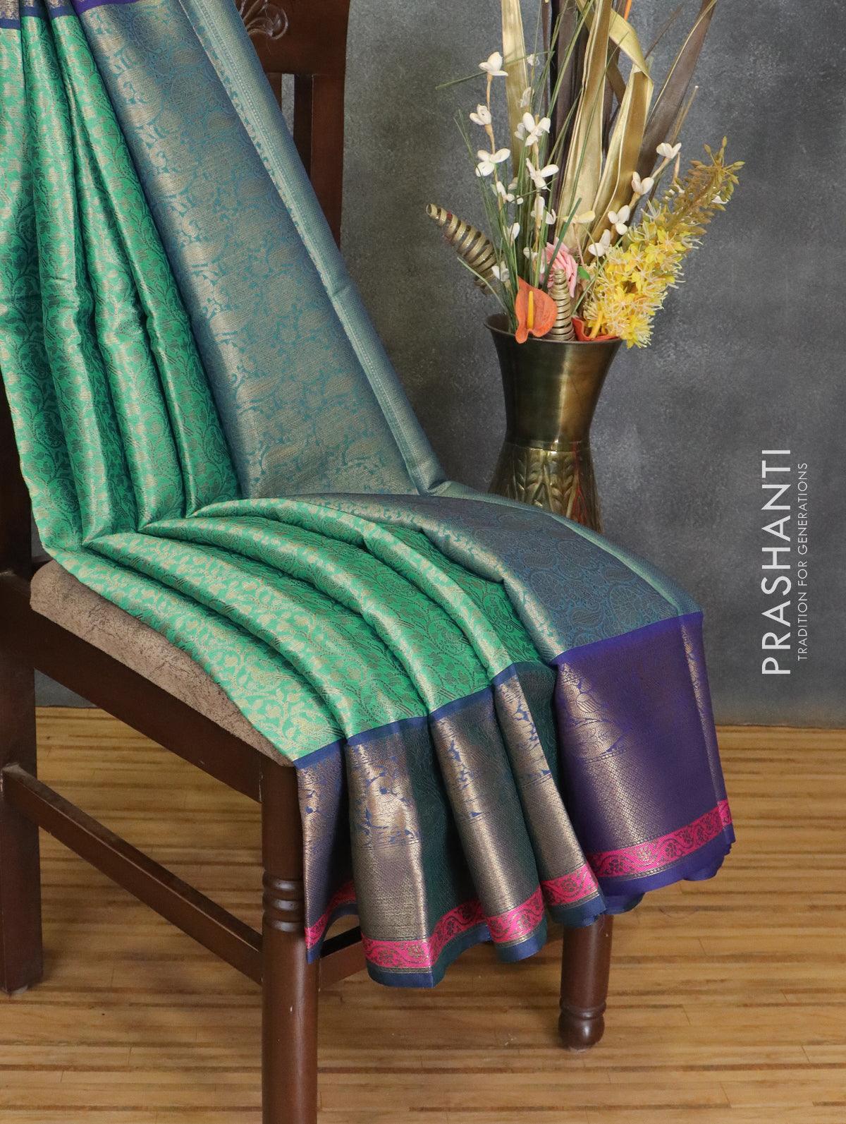 Banarasi kora saree teal green and blue with allover zari weaves and zari woven border