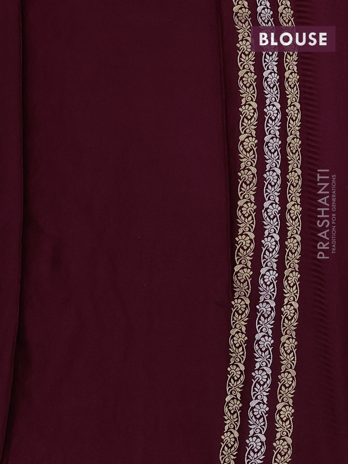 Banarasi mushru silk saree maroon with allover stripes pattern & zari buttas and satin border