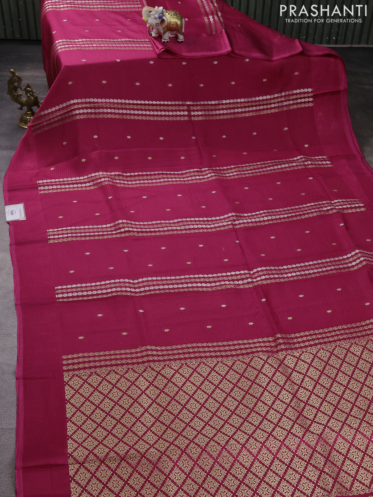 Banarasi mushru silk saree pink with allover stripes pattern & zari weaves and satin border