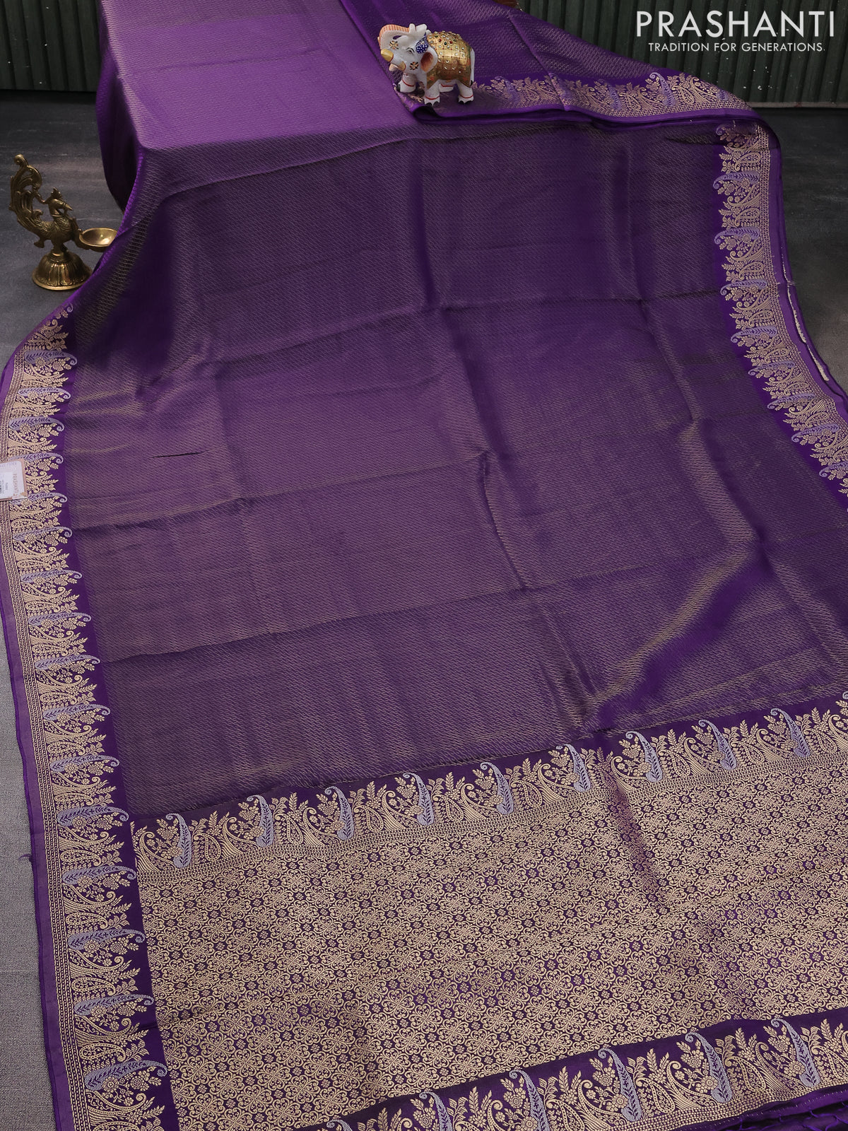 Banarasi mushru silk saree violet with allover zari weaves and zari woven border